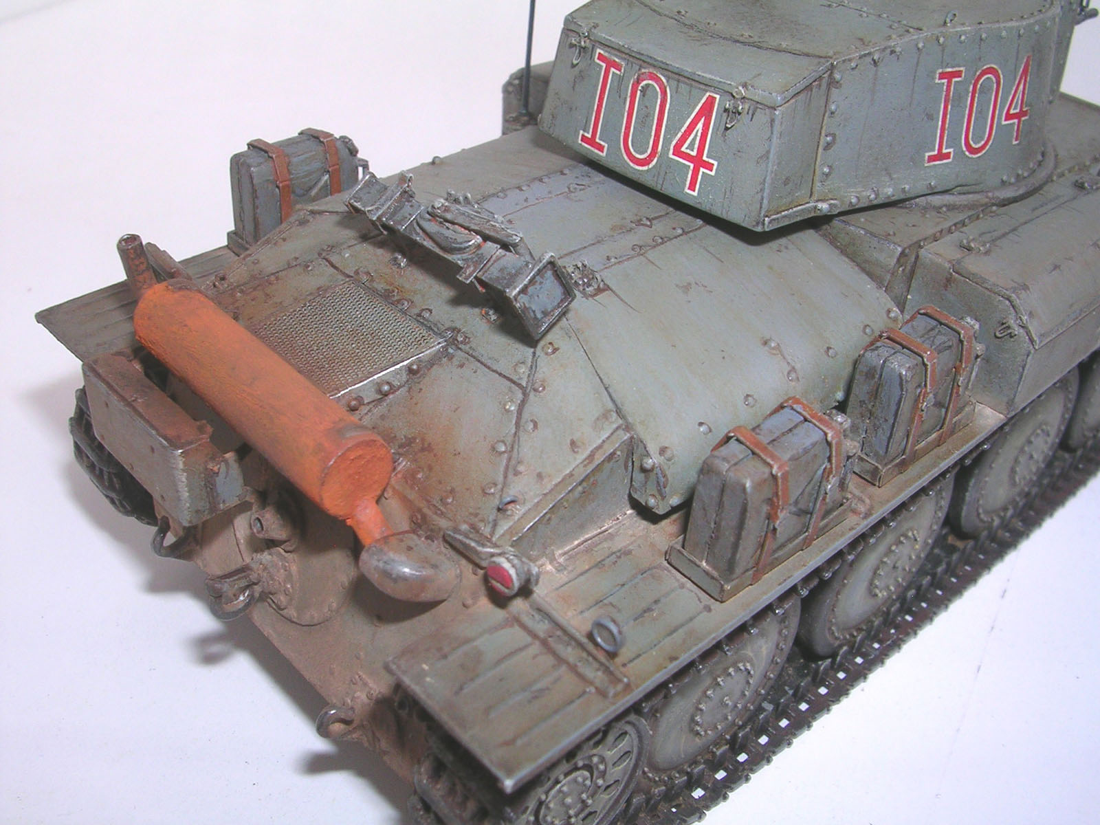 -пулемет в башню (родные отлиты очень грубо). В корпусе я пулеметное отверстие заглушил и превратил свою "Прагу" в командирский танк (для чего добавил самодельную антенну)