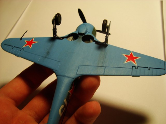 Модель хорошая, стыкуемость тоже в норме. Красил кистью, красками"звезда". Из доработок только антенна. Пилот сидит на крыле потому-что, в кабину он не помещается) Это первая модель в таком масштабе, в общем процесс сборки мне понравился, теперь дело за вами, комментируйте, критикуйте)