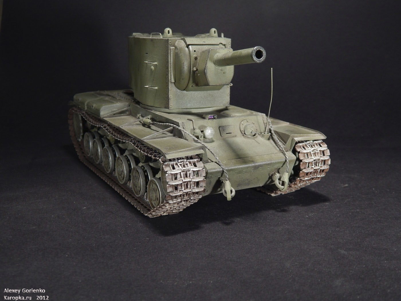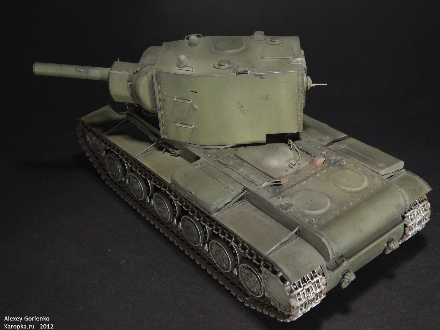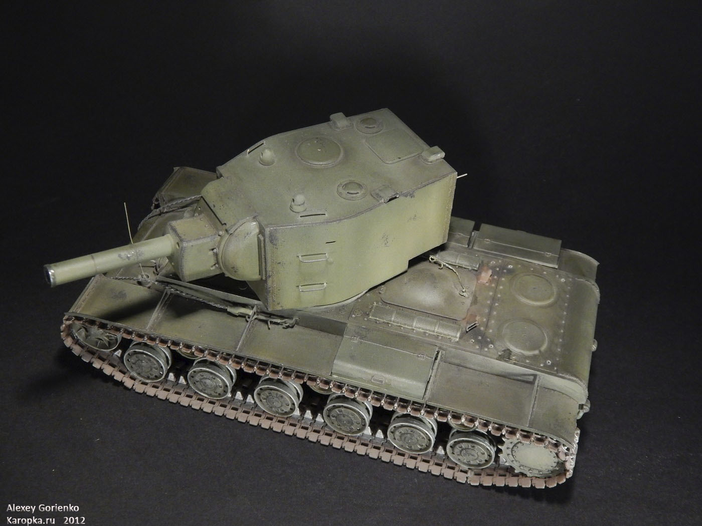 Хорошо известная модель от Трумпетера, перепакованная Моделистом. В галерее их много и сделать что-то радикально выделяющееся из всей массы моделей весьма трудно, так что это обычный КВ-2. Он большой, он зеленый. Больше и сказать нечего.