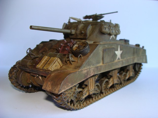 Это шерман который я уже выкладывал, но с небольшими доработками. Убрал правый грязевик, грязь и пыль сделал как следует. поклажу перекрасил и добавил ящик, и ещё немного по мелочи. ну вроде бы всё. смотрите, отценивайте.