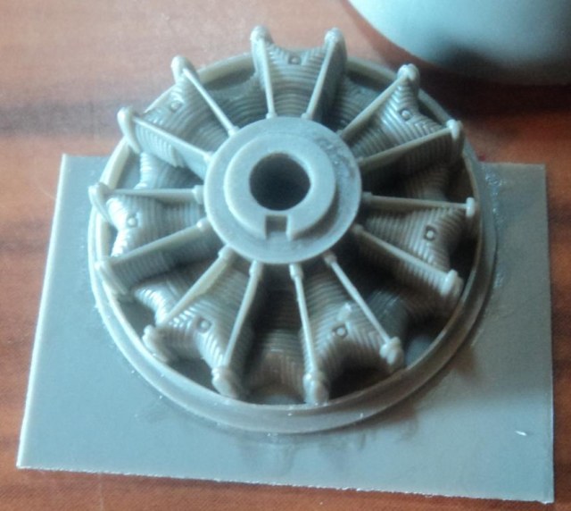 Второй пакетик. Детали воздушного винта, передняя часть двигателя и передняя часть капота. Двигатель смотрится довольно неплохо, хотя и не целый и открытыми капоты не сделаешь.