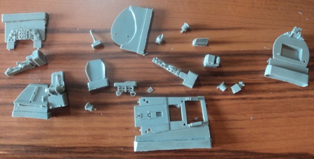 Четвертый пакетик детали кокпита. Отдельно хочется отметить сиденье с ремнями. при определенной тонировке будет смотреться как живой. А вот приборная панель хотя и рельефная, я бы заменил ее травлением. Но это отдельная песня, потому как травления для этой модели я не видел и, возможно, не увижу, пока не сделаю сам =)