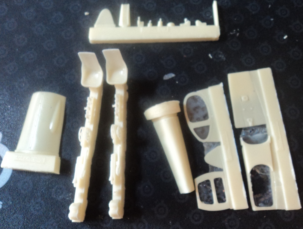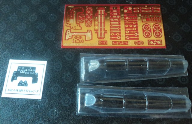 В наборе имеются, плашка травления с подложкой под панель приборов, два вакуумированных фонаря и смола. В смоле комплекты под два кокпита, капот и зафонарная часть фюзеляжа. Смола не самого лучшего качества, но бывает и хуже.