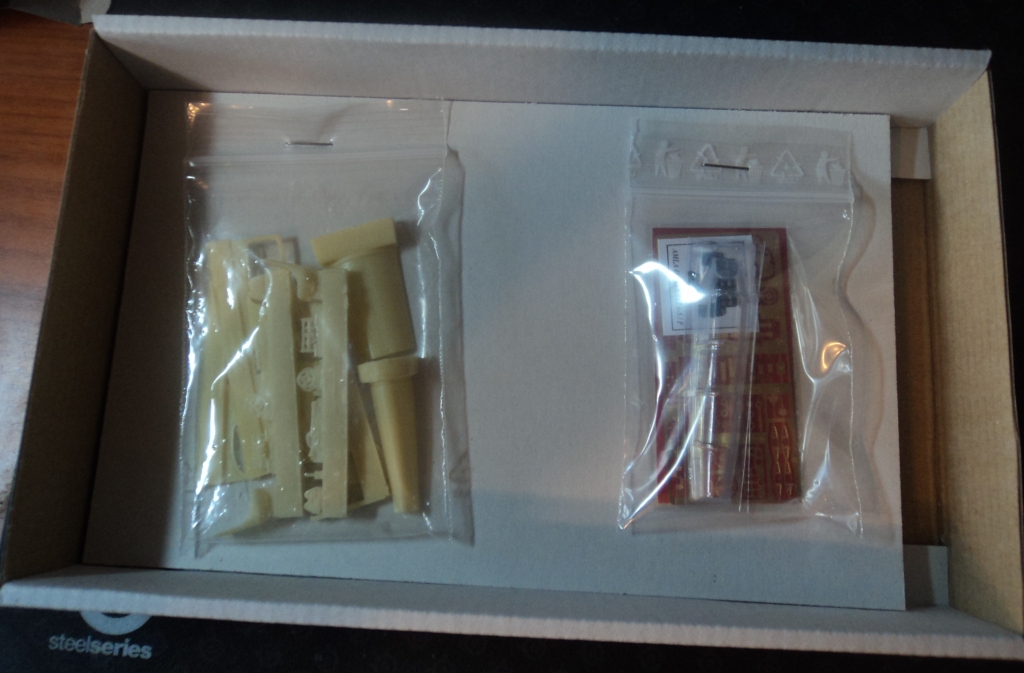 Набор пришел в маленькой коробке, размерами 235х140х40. Сама коробка из жесткого картона, крышка из мягкого. В сравнении с конверсионным набором на Ла-5УТИ, который я выложу несколько позже, этот набор бедноват. Отсутствуют декали и инструкция.