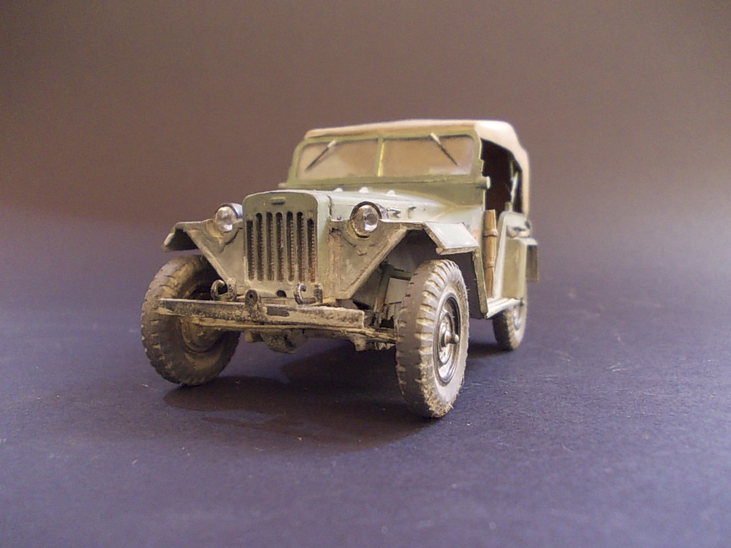 Добавил тент ,заднюю фару,дворники,крышечки на капоте,ручки и скобы сзади,рулоны полотняных дверц,лопату.Радиаторную решетку не стал переделывать под время войны,уж простите.