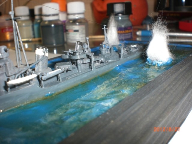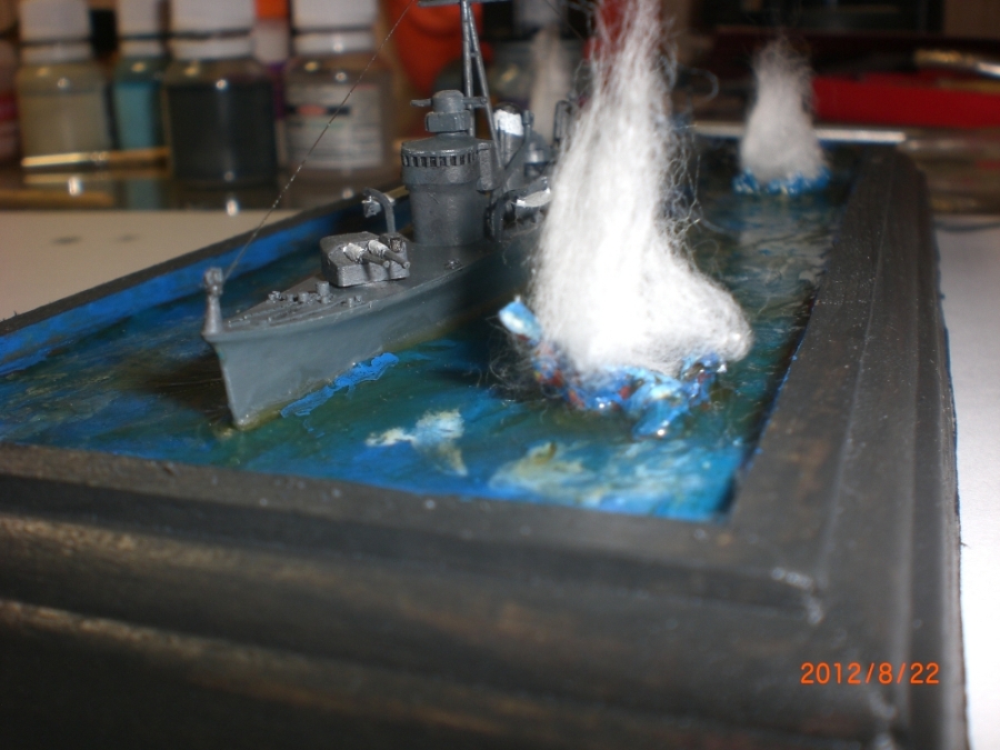 Очень хороший почин. Работа заслуживает уважения хотя бы за то, что автор взялся за waterline масштаб и воплотил его в диораме, а вода и взрывы со временем усовершенствуются. Лиха беда начало!
