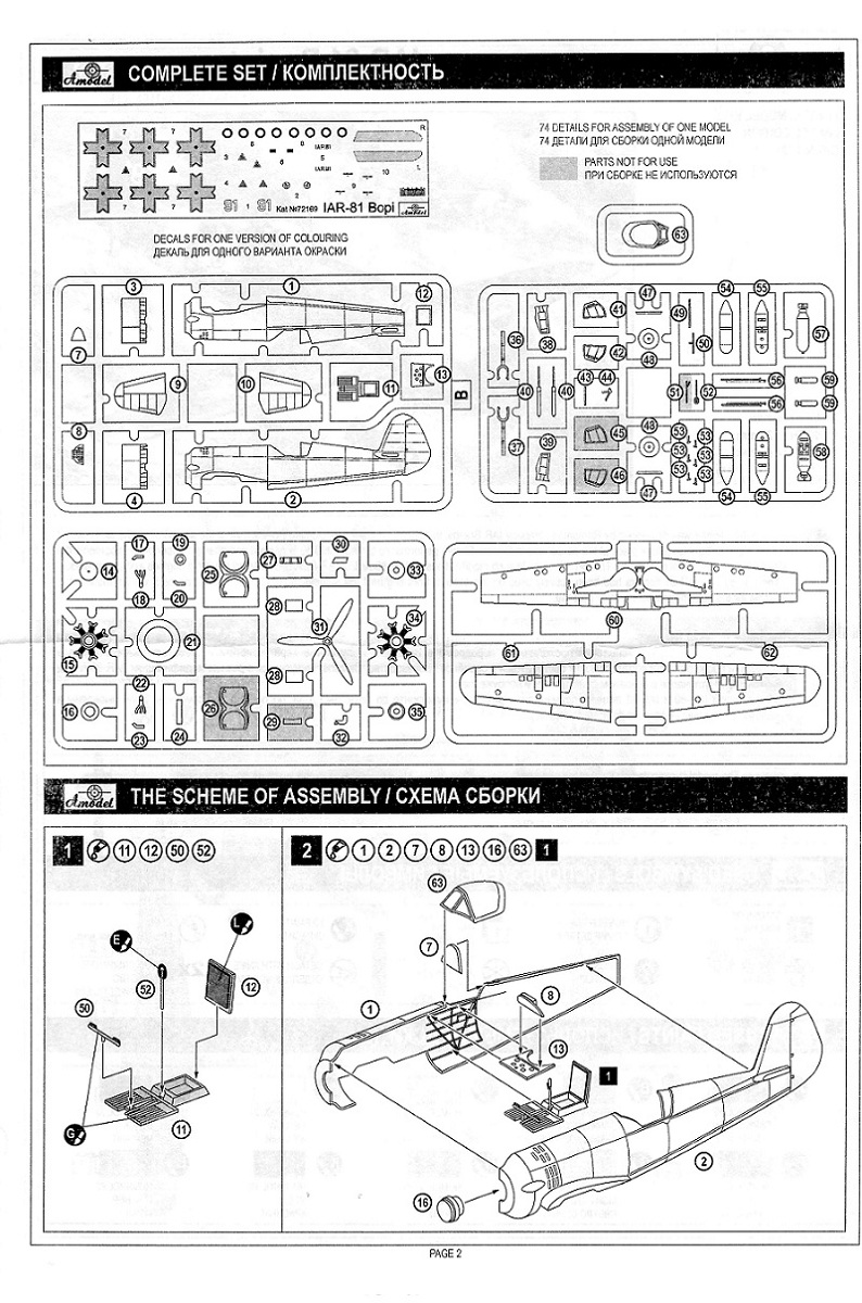 Здравствуйте коллеги! Мой очередной обзор. На этот раз истребитель-бомбардировщик ВВС Румынии IAR-81 Bopiпроизводителя Amodel. Набор собой представляет, коробка с верхней загрузкой и яркой картинкой. В коробке находится четыре литника из серого пластика и один прозрачный, инструкция на четыре страницы и два не больших листа декали. Литьё выполнено достаточно не плохо, почти без облоя, детали замыленые. Про стыкуемость будет видно при сборке. Расшивка внутренняя, тонкая не глубокая , в некоторых местах пропадает, желательно расшивку углубить. Деталировка на среднем уровне. Фонарь дан в закрытом варианте, достаточно прозрачный, но пластик толстоват. Инструкция понятная, думаю труда в сборке не будет. Краска указана в цветах фирмы Humbrol. Декаль дана на один вариант окраски, технички совсем немного. Если я не ошибаюсь, румынские кресты предоставлены не правильные. Должны быть с синей окантовкой, а даны с чёрной. Если возникнут, какие-нибудь вопросы, не стесняйтесь, задавайте.