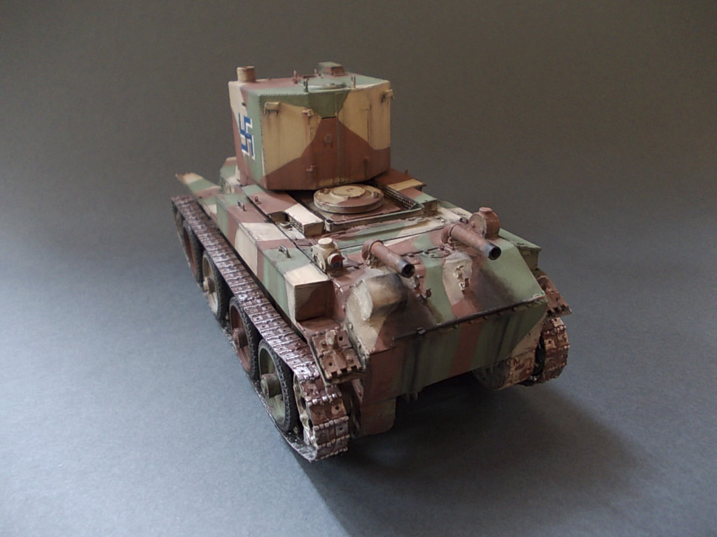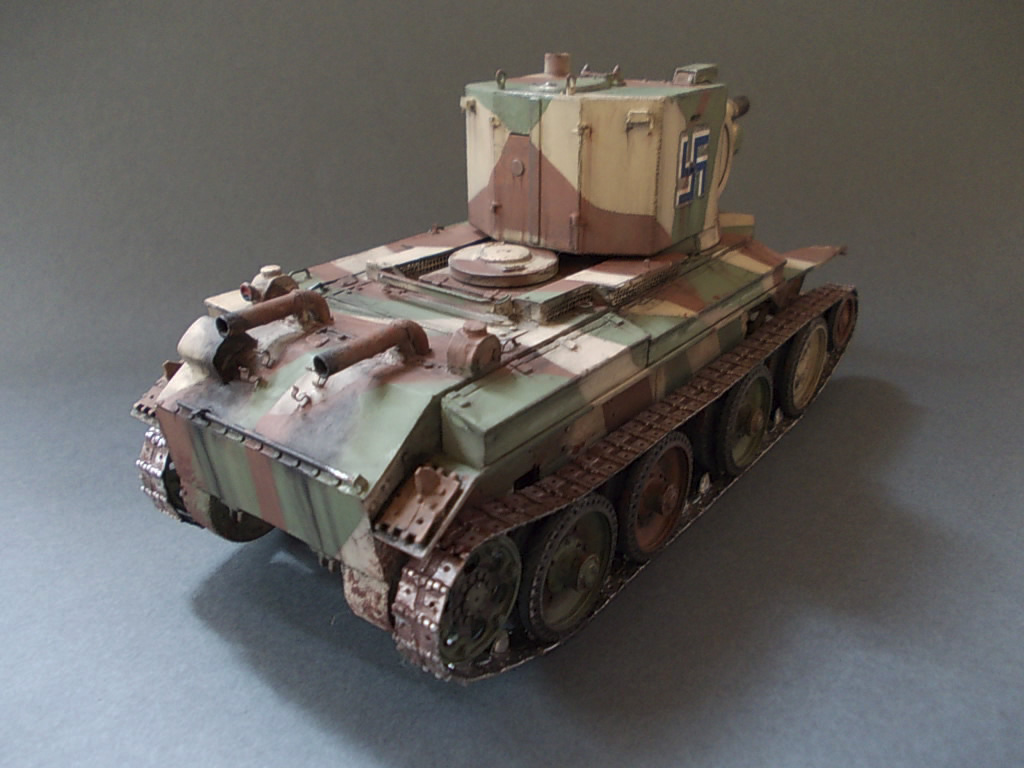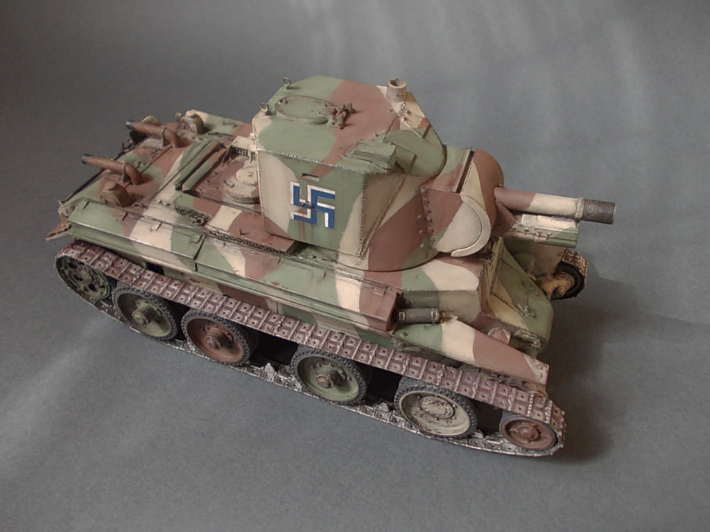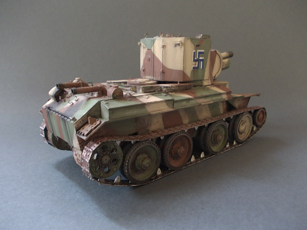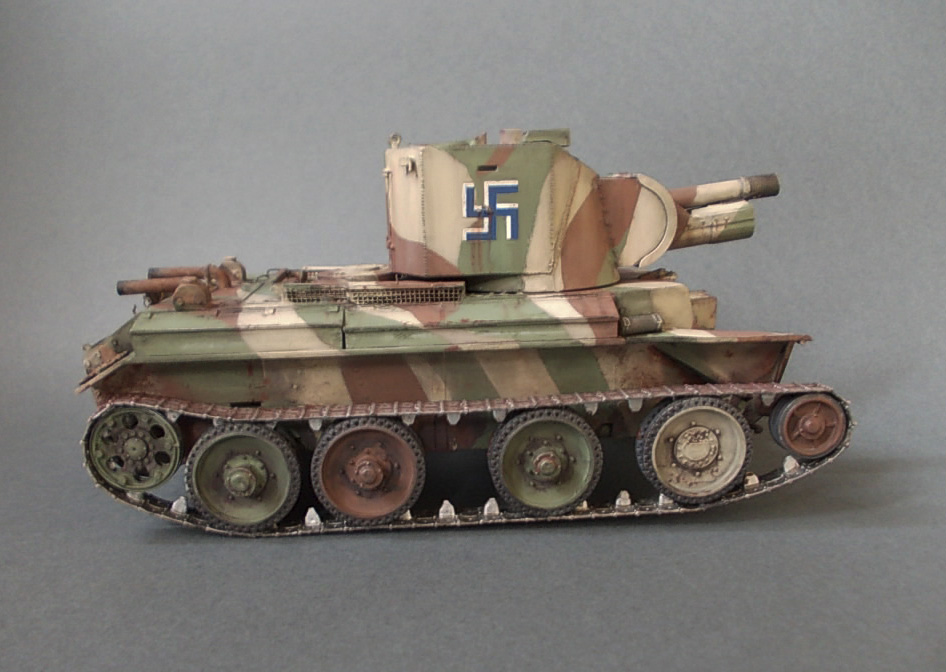 Камуфляж у финов был серо-коричнево зеленый,(может фото искажает,у вас вроде,как, желтый цвет присутствует), а свастика на БТТ черная,(ранняя- голубая), но БТ-42 относится к позднему периоду.А так, все на высоте.Кстати,пилю финский "Виккерс", немного "в теме".С уважением!