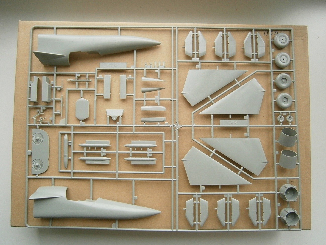 В каропке находится шесть литников один из них остекление фонаря,все отличного качества,с качественной расшивкой.Деколь не очень богатая. В модели предусмотрена механизация уборки крыла с изменением угла пилонов подвески. Инструкция по сборке хорошего качества есть даже фотографии .НУ вот вроде и все ,приступаю к сборке донного гиганта.