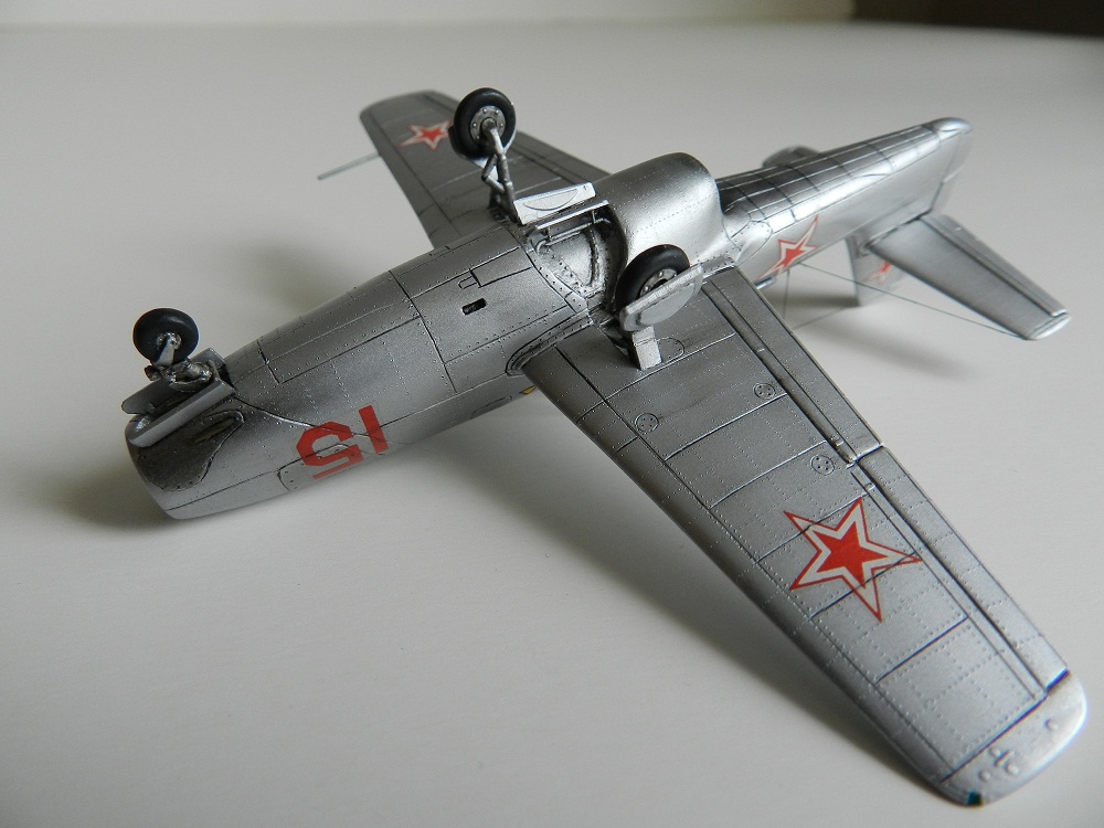 Редкостный самолет. По работе как всегда все здорово, единственно, на мой взгляд низ фюзеляжа за соплом грубовато расшит, впрочем с мягким пластиком тяжеловато, сам перешивал Мастеркрафтовский МиГ-17, по пластмассе смотришь, вроде все нормально, а покрасил и смыл - траншеи.