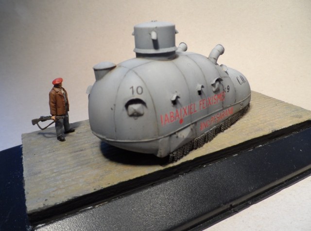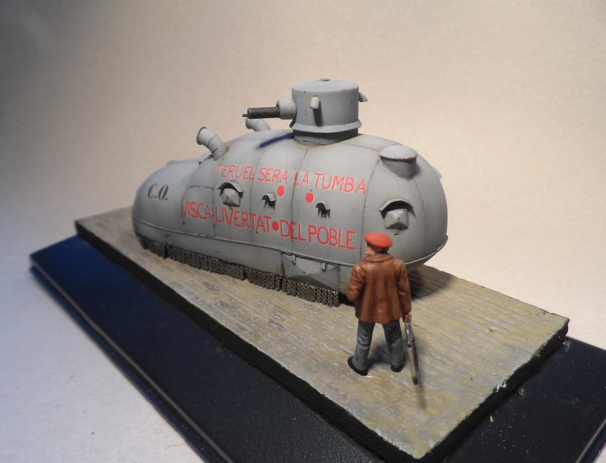 Объект - бронированный грузовик з времен гражданской войны. Оригинал был "забронирован" чем то вроде промышленных паровых котлов. Примерно одинаковых было построено три штуки, воевали на юге, в окрестностях Барселоны.