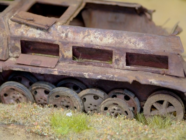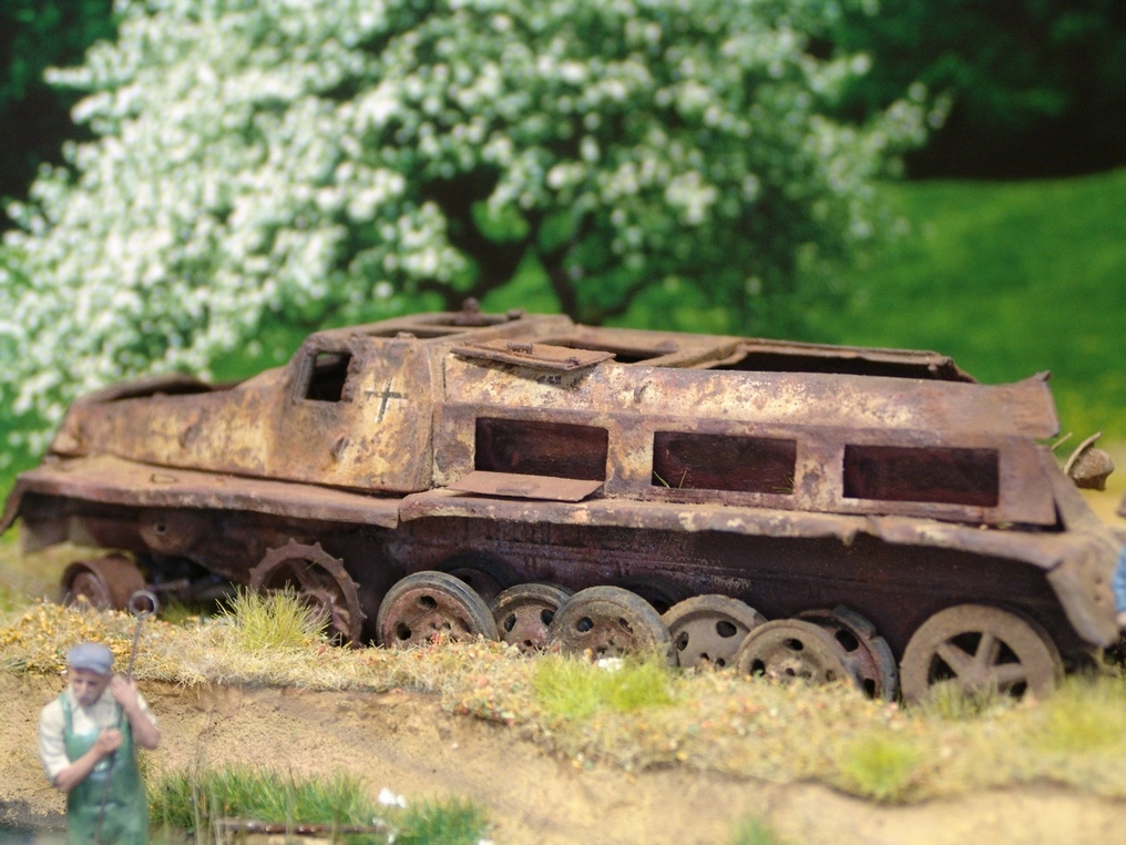 Высший пилотаж!Очень натуральное железо,порадовали мелочи в виде ржавого стрелкового оружия,малец здорово дополнил композицию.
