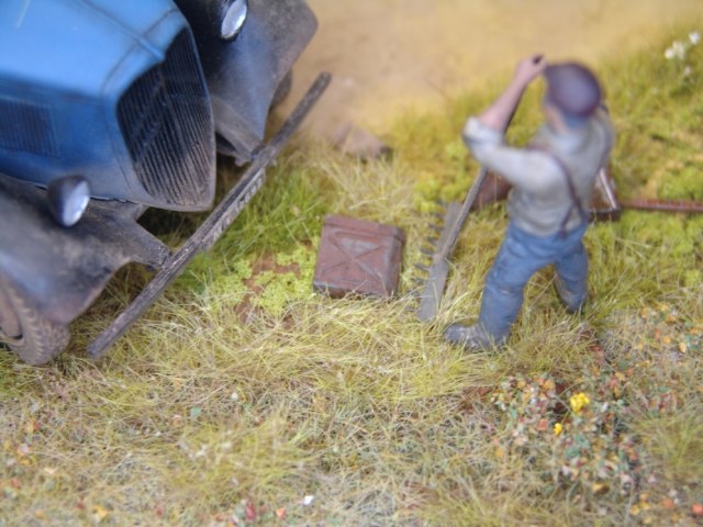 Выставляю на обсуждение очередную диорамку на тему "Эхо войны". Из истории, в Европе сбор следов войны проходил в частном порядке и продолжался чуть ли не до 70-х годов. В данном случае на диораме период конец 40-х начало 50-х годов. Некоторые модели уже были в темах, поэтому их дополнительно описывать не буду. SWS за основу взята модель от фирмы NKC-modeles в эпоксидке остальное самоделка.