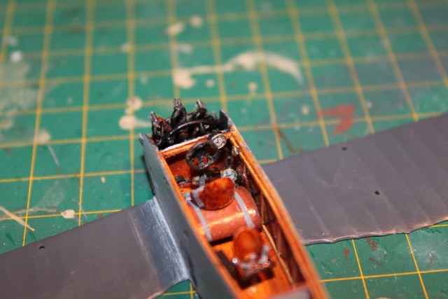 Работа осложнялась отсутствием сведений по матчасти. Чертежей не сохранилось, нет и никаких фотографий и описаний интерьера. В итоге кабину сделал по аналогии с "Анаде", в котором кроме движка ничего принципиального, насколько известно, не меняли. Хотя и имеющаяся компоновочная схема "Анаде" тоже неизвестной степени достоверности. Приборную панель не стал делать, где-то встречал упоминание, что не было ее. Надо сказать, что производитель - фирма Emhar - дает набор чешского "Анасаля", экземпляр которого сохранился и есть много валков. Но он не годится - переделан, там другой фюзеляж, другой капот, другой радиатор. Видимо, это уже постройка "австрийского периода".