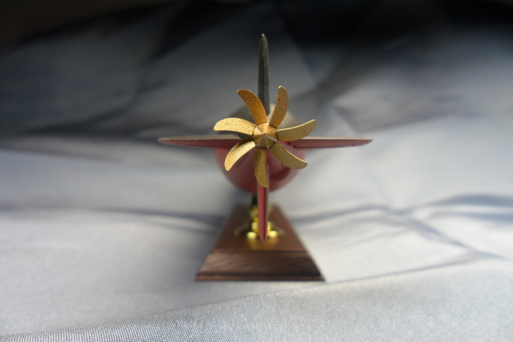 Мне очень нравятся (я экспериментировал некоторое время)японские металлики GSI Creos из серии Mr.Metallcolor. Там несколько цветов. Для винтов лучше цвета Gold или Brass. Они прекрасно идут через аэр. После высыхания полирнете сухой мягкой тряпочкой и будет идеальный блеск, а сверху футурой довольно "толсто" для глубины цвета. Но обязательно возьмите фирменный растворитель.