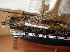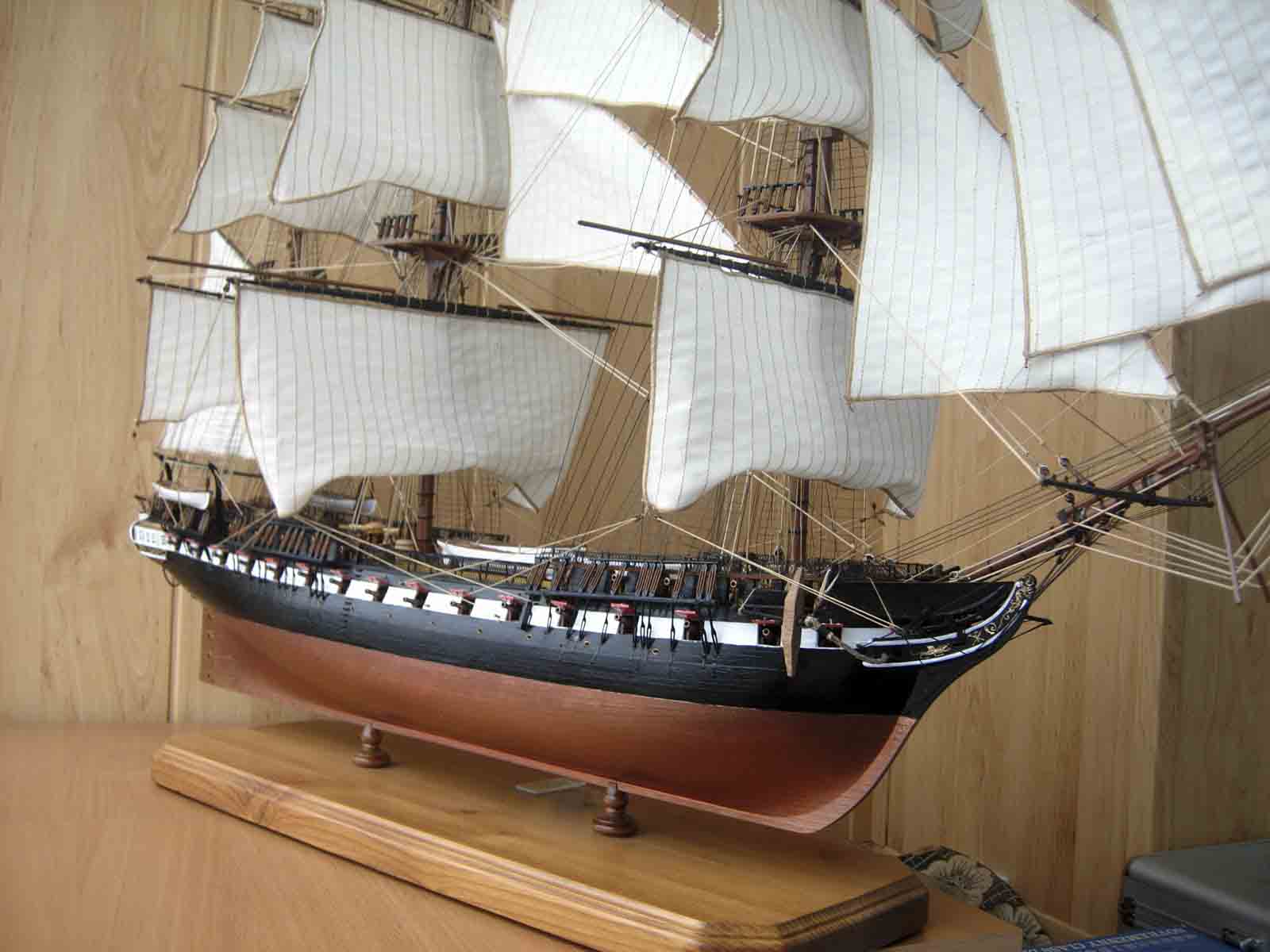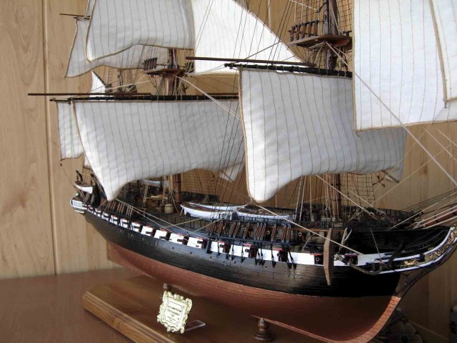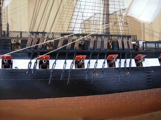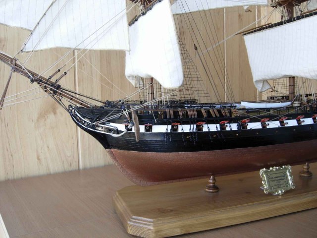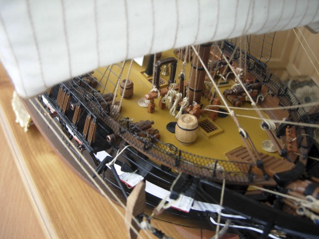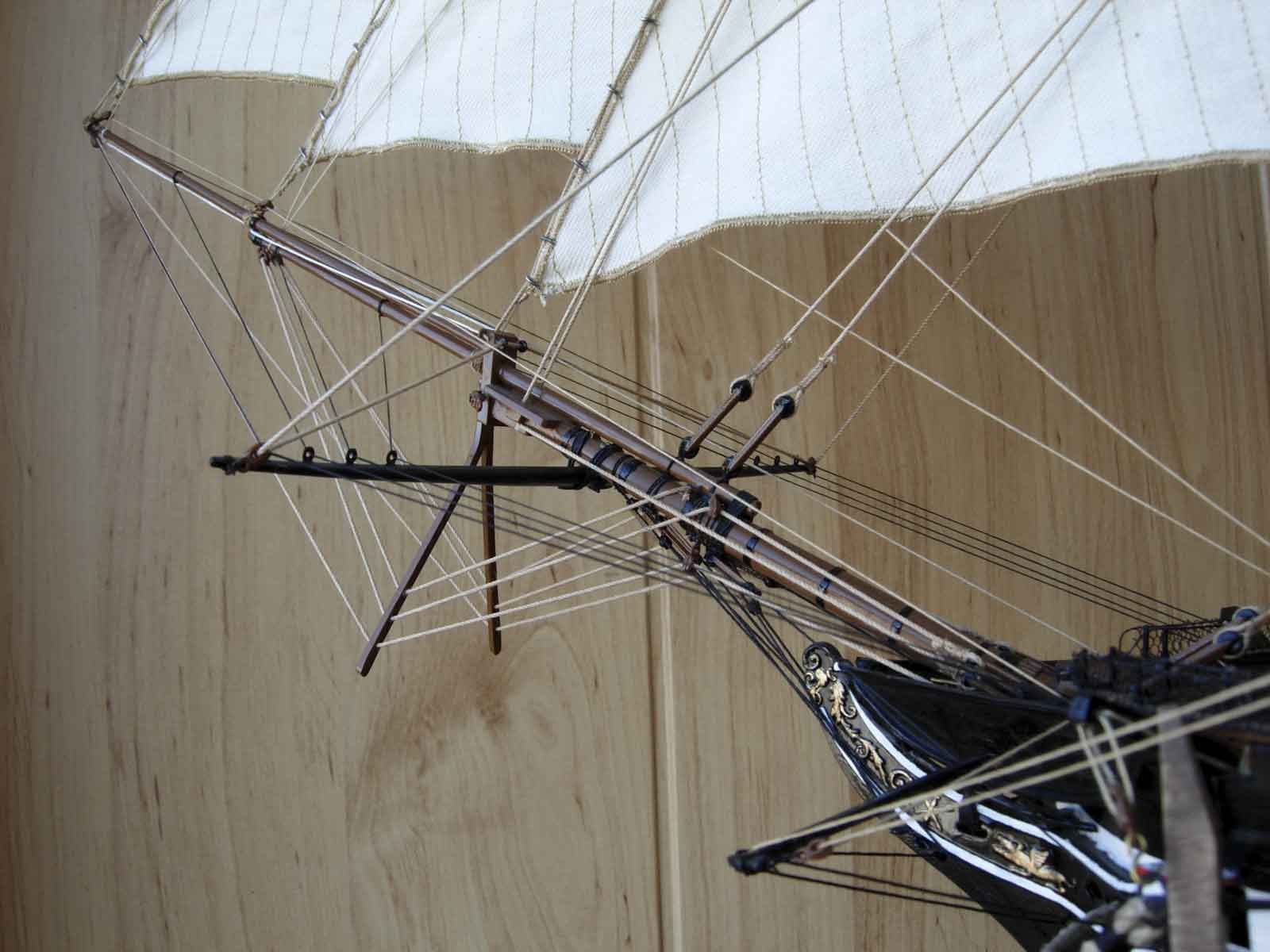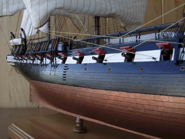 Полностью согласен, отступлений от оригинала (у меня 150 фото оригинала) очень много! Причём есть более существенные чем толщина и цвет такелажа! - например цвет мачт и внутренней стороны борта. Да, пушки абсолютно не его! - просто были куплены красивые и подходящего размера, а также ядра для них подходящего(примерно) диаметра.