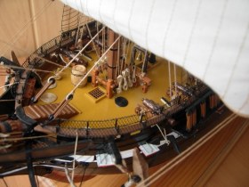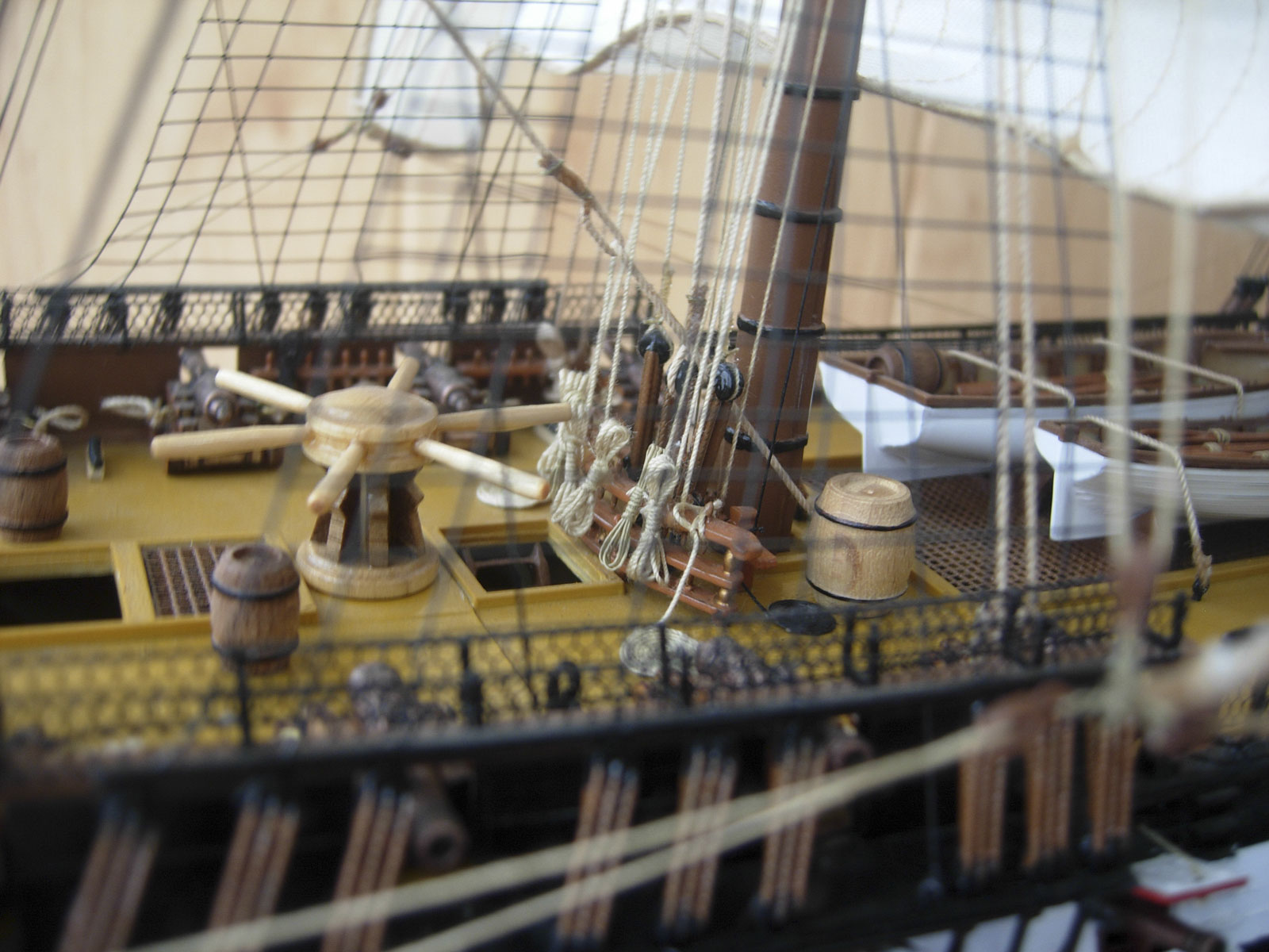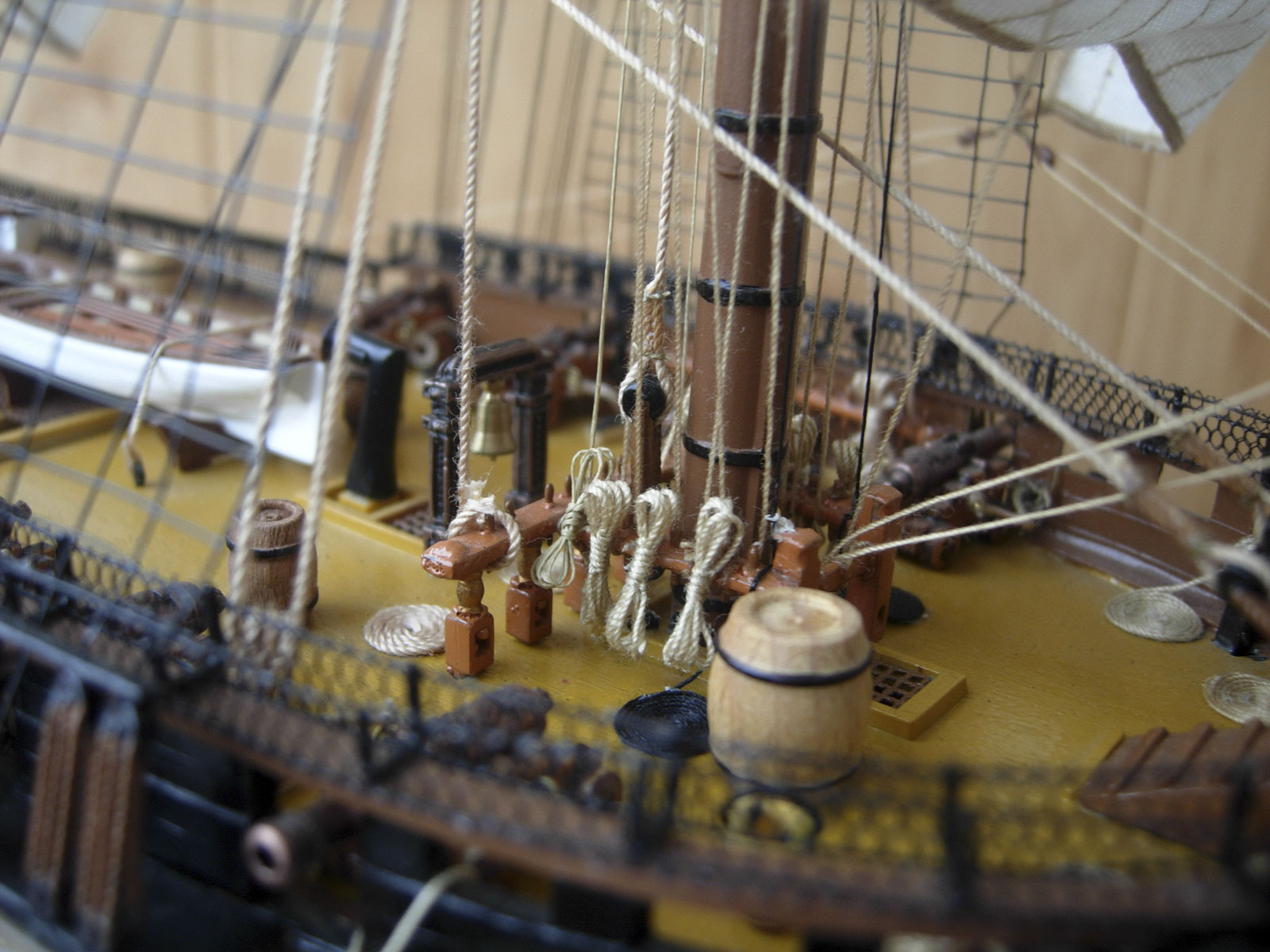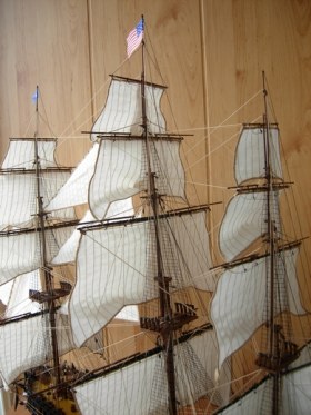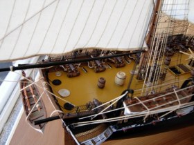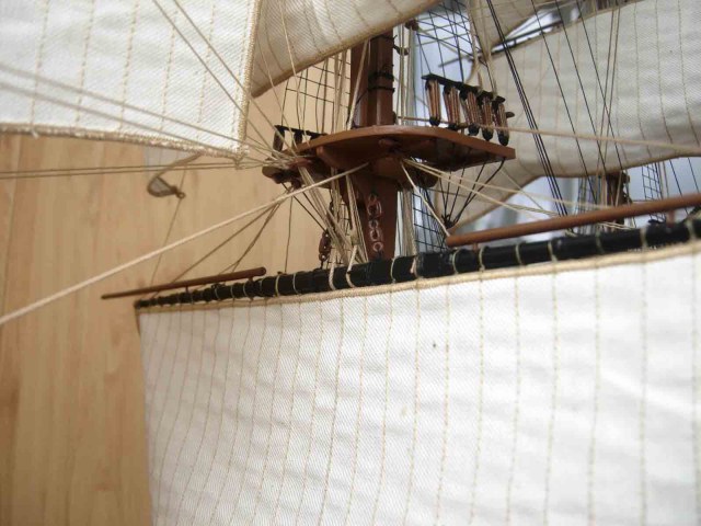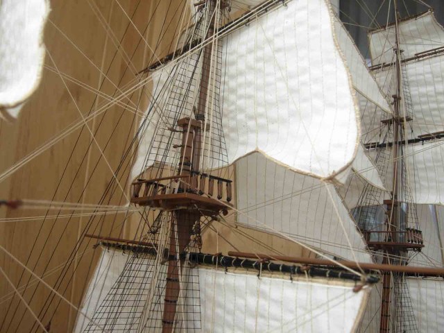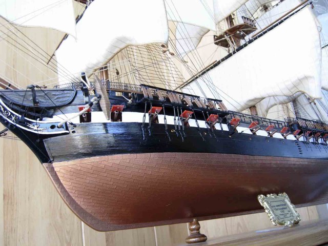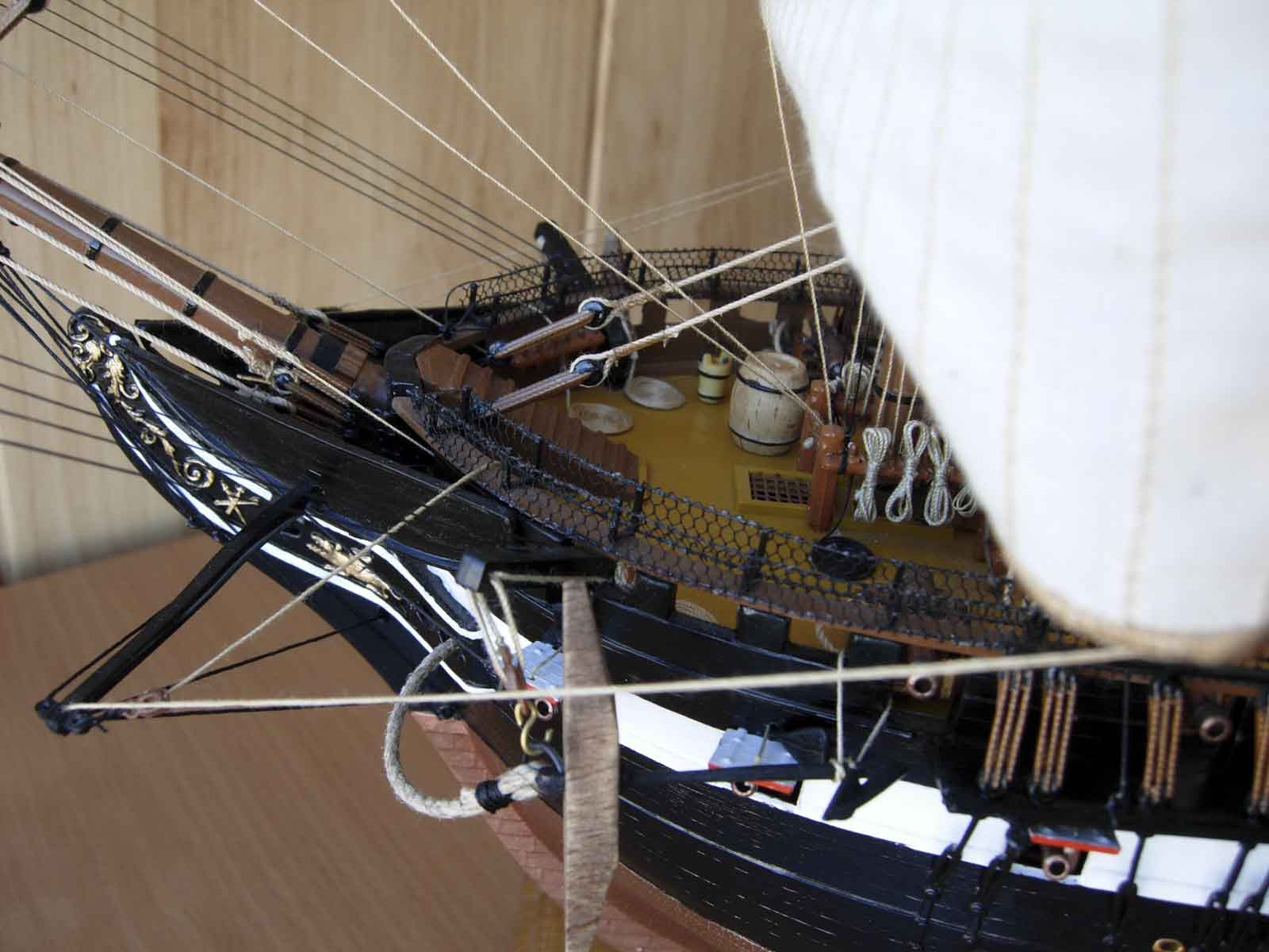 Полностью согласен, отступлений от оригинала (у меня 150 фото оригинала) очень много! Причём есть более существенные чем толщина и цвет такелажа! - например цвет мачт и внутренней стороны борта. Да, пушки абсолютно не его! - просто были куплены красивые и подходящего размера, а также ядра для них подходящего(примерно) диаметра.