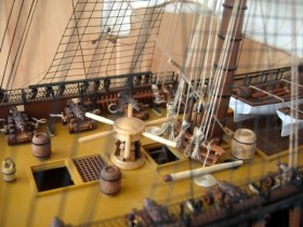 Немного придиризма, палуба немного однообразна, бочки стоящие просто так, не совсем правильно по логике. Орудия хороши, однако они должны быть чугунными, а не бронзовыми.