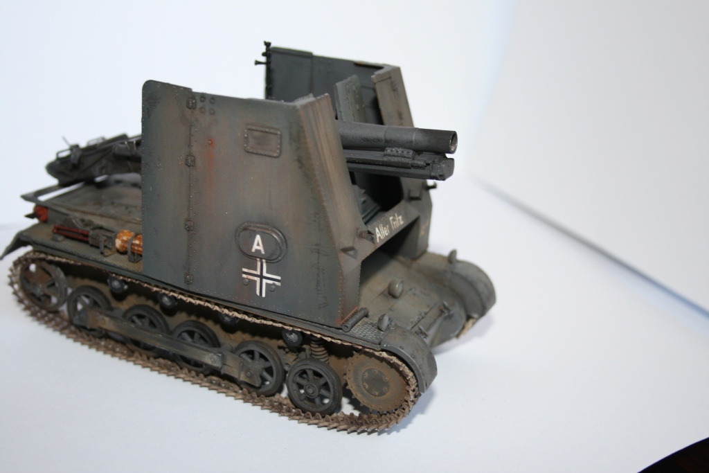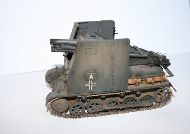 По другим сведениям этот самовар обозвали так: 150mm sIG.33 auf Gw.I "Sturmgeschutz (I)", в 1939г. - второй тип САУ, сконструированный фирмой Alkett на базе танка Pz.IB. В 1939 году изготовлено 38 единиц. А работа понравилась.Загадинг логичен.Только бы ещё,нутрянку увидеть,орудие то съёмное.А то не один ещё не показывал её,хотя на "каропке" модель представлена.