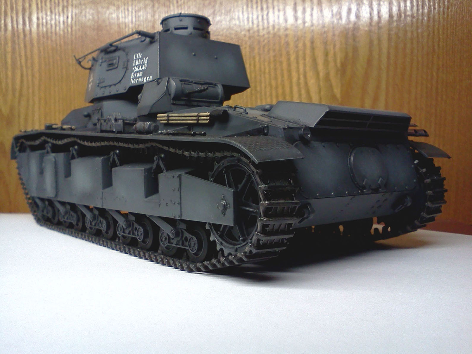 Не совсем верная информация. 3 Нойбау были сведены в отдельный танковый батальон и отправленны весной 1940 года в Норвегию. 2 из 3 машин благополучно и успешно провоевали всю кампанию и были отправленны в Германию лишь в 1941-42 годах, после чего предположительно пошли на лом. В связи с этим в везеринге и следах эксплуатации(при желании) можно ох как разгуляться.