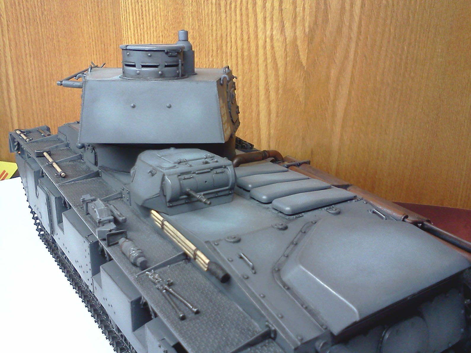 Окрас получился такой по двум причинам: ее хотел опять входить в долгий штопор запила и боялся испортить дорогую модель. Следующий многобащенник будет т-28 который уже полтора года ждет очереди, там попробую исправиться.
