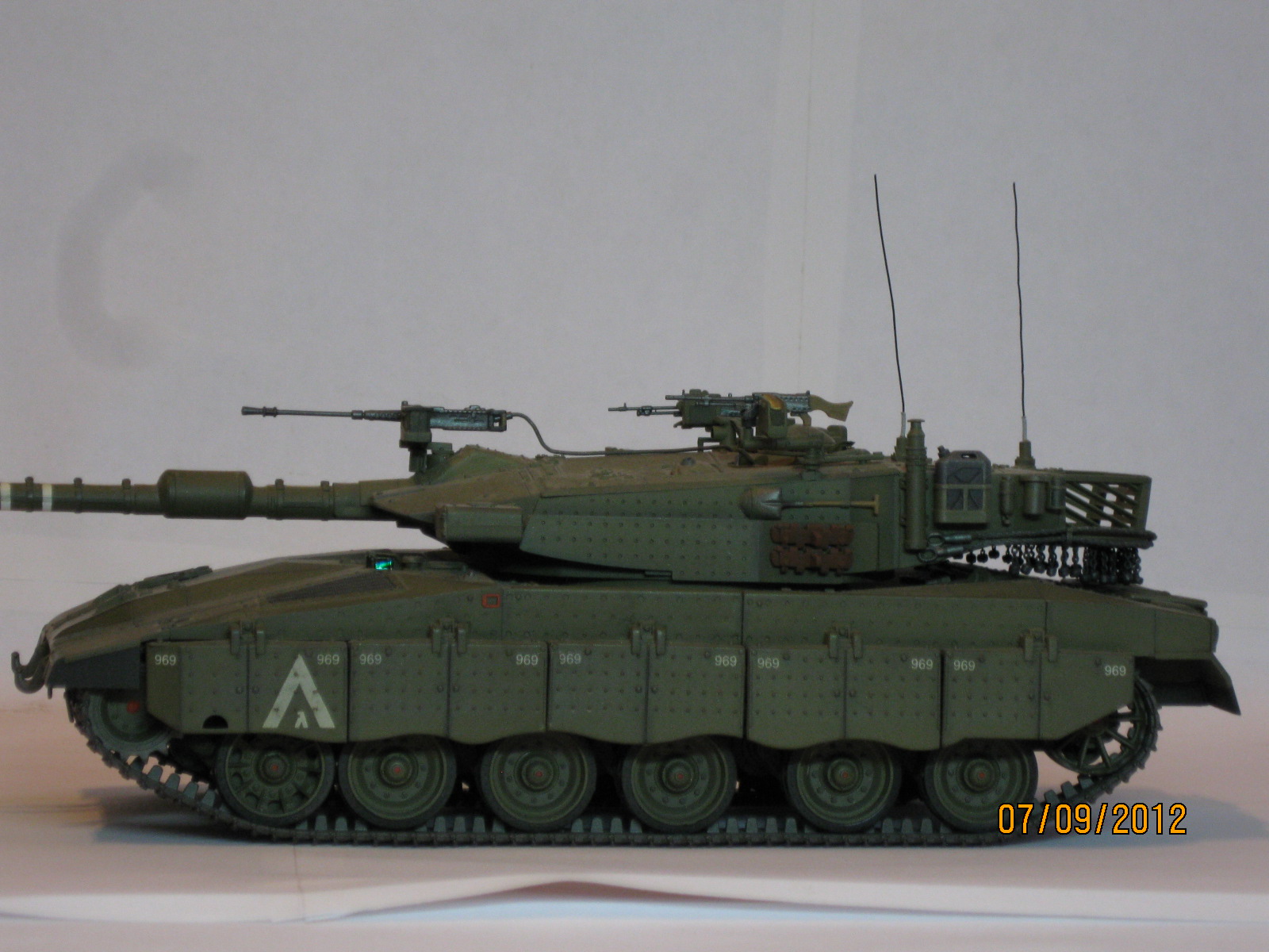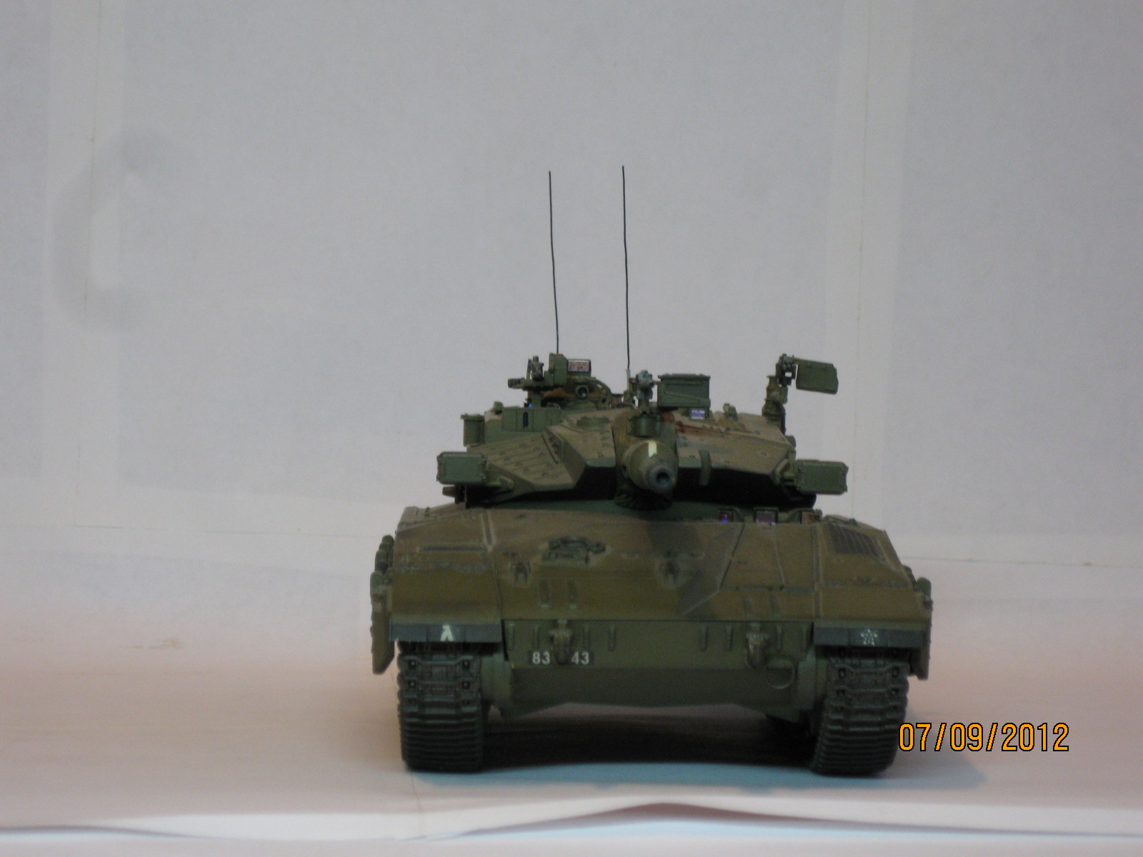 Всем привет.Перефоткал танк МЕРКАВУ 3 от академа.Собирал пару лет назад.От себя-триплексы диски,"гирлянды",антенны,подводка к пулемету и щитки на корме.Цвет мешал на глаз,вроде попал.Про тросы сказали-сильно провисают.Ну вроде все.Прошу к просмотру.
