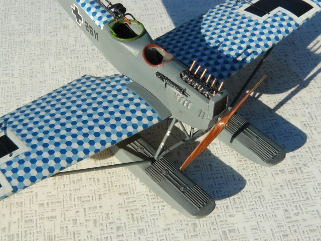 Решил разнообразить модель установкой спаренного турельного пулемета, чтоб "злее" выглядел. Иногда немцы их применяли, практически на всех типах самолетов, вместо стандартного одиночного "Парабеллума", вот я и решил, чем Ганза хуже?)