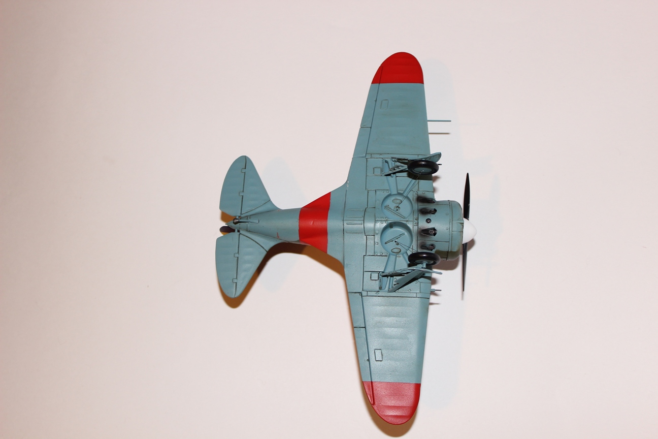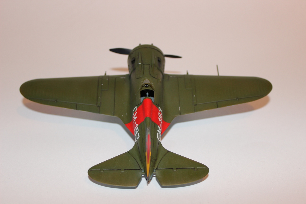 Красил аэрографом в цвета АМТ-4/7 из палитры водоразбавляемого АКАНа. Кроме того применялся АКАН А-14 для окраски внутренних поверхностей машины и кабины пилота. Цвета республиканских ВВС на киле наносил аэрографом. Для выделения расшивки использовал художественную акварель цвета «умбра»+фэйри. Нанес небольшой нагар в районе выхлопных патрубков, сделал несколько сколов металликом от «Vallejo». Декали наносил при помощи раствора «Mark Fit» от «Тамии». Сверху модель покрыта полуглянцевым лаком АКАН.