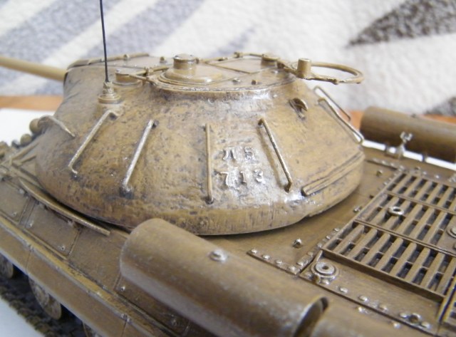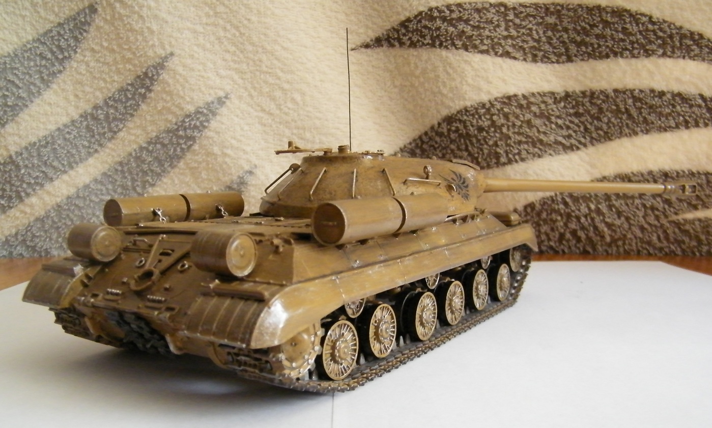 На лобовой броне две фары...ИК -осветителя ФГ-125 ПНВ мех.вод-ля ТВН-2 НЕТУ(все это д/б в сеточном ограждении)....значит это просто ИС-3...а ребята про краску пишут...