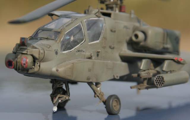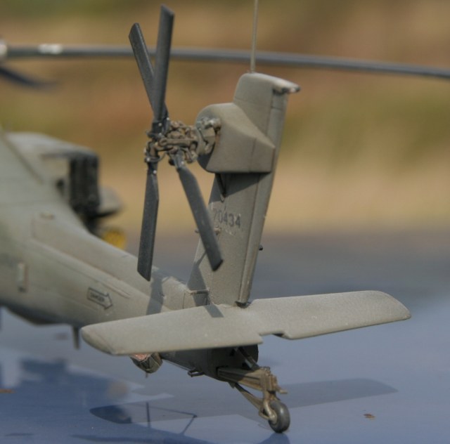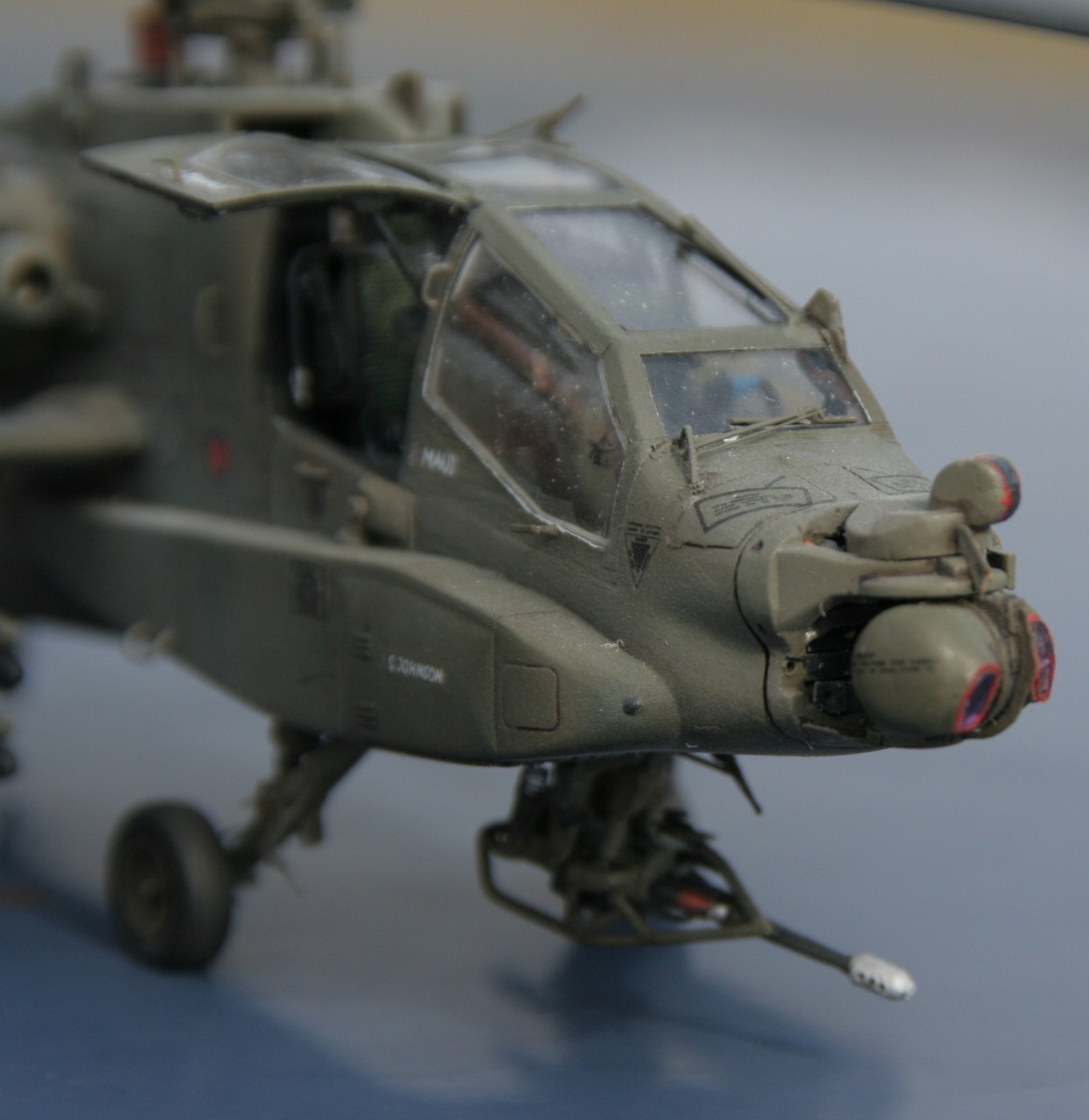 - переделан нос модели (добавлены недостающие элементы в неподвижной части ситемы прицеливания, прорезаны окна системы TADS и установлена имитация оптических стёкол);