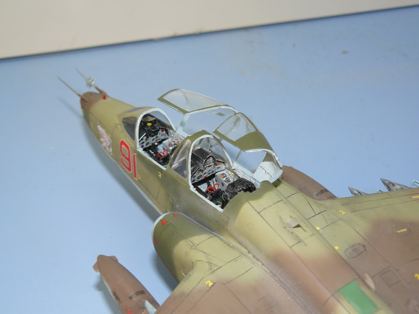 КП,он же бывший ШМЕР,сама по себе модель неплохая,кабина проработана тоже неплохо,но есть замечания:видны стыки половинок колёс,заднюю кромку крыла и киля можно было бы и сточить,как и крылышки на подвесных баках.Видна грубоватая расшивка,особенно снизу,фактура поверхности обработана тоже грубовато.По окрасу не скажу,но смотрится!