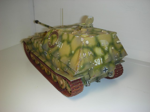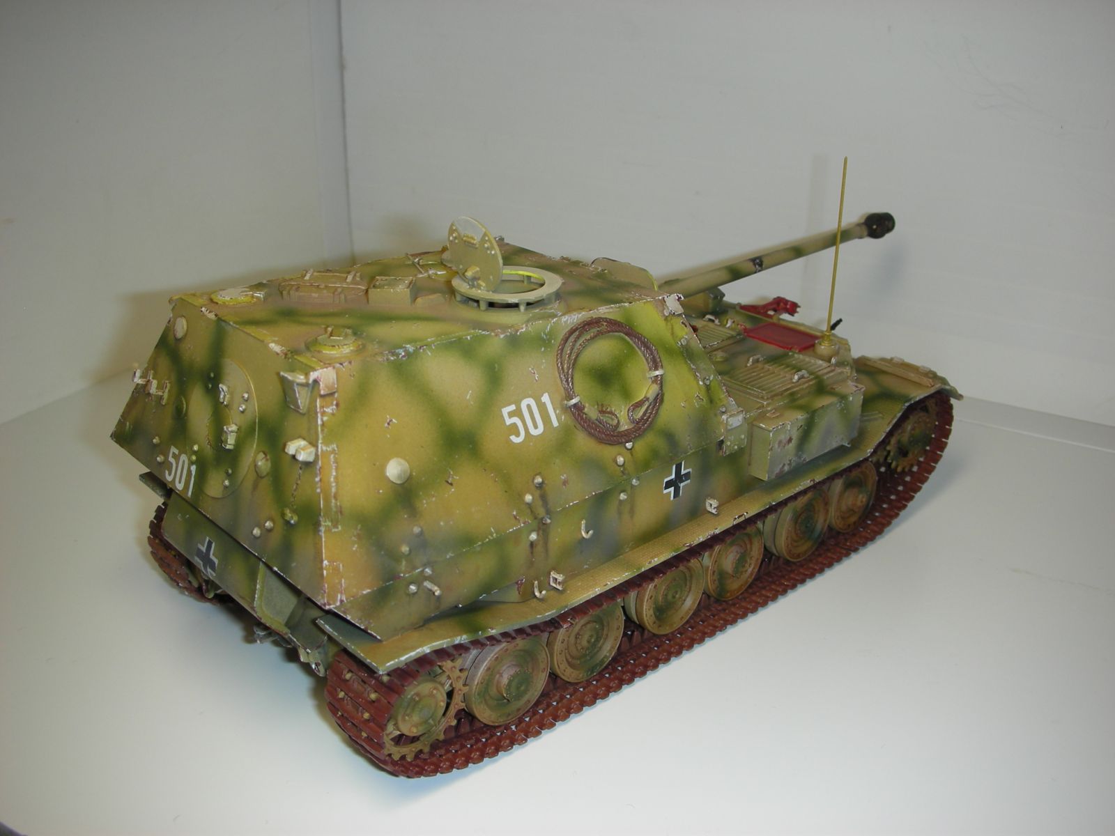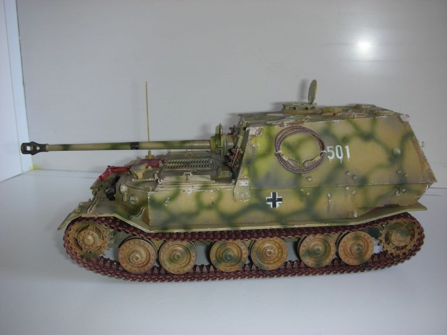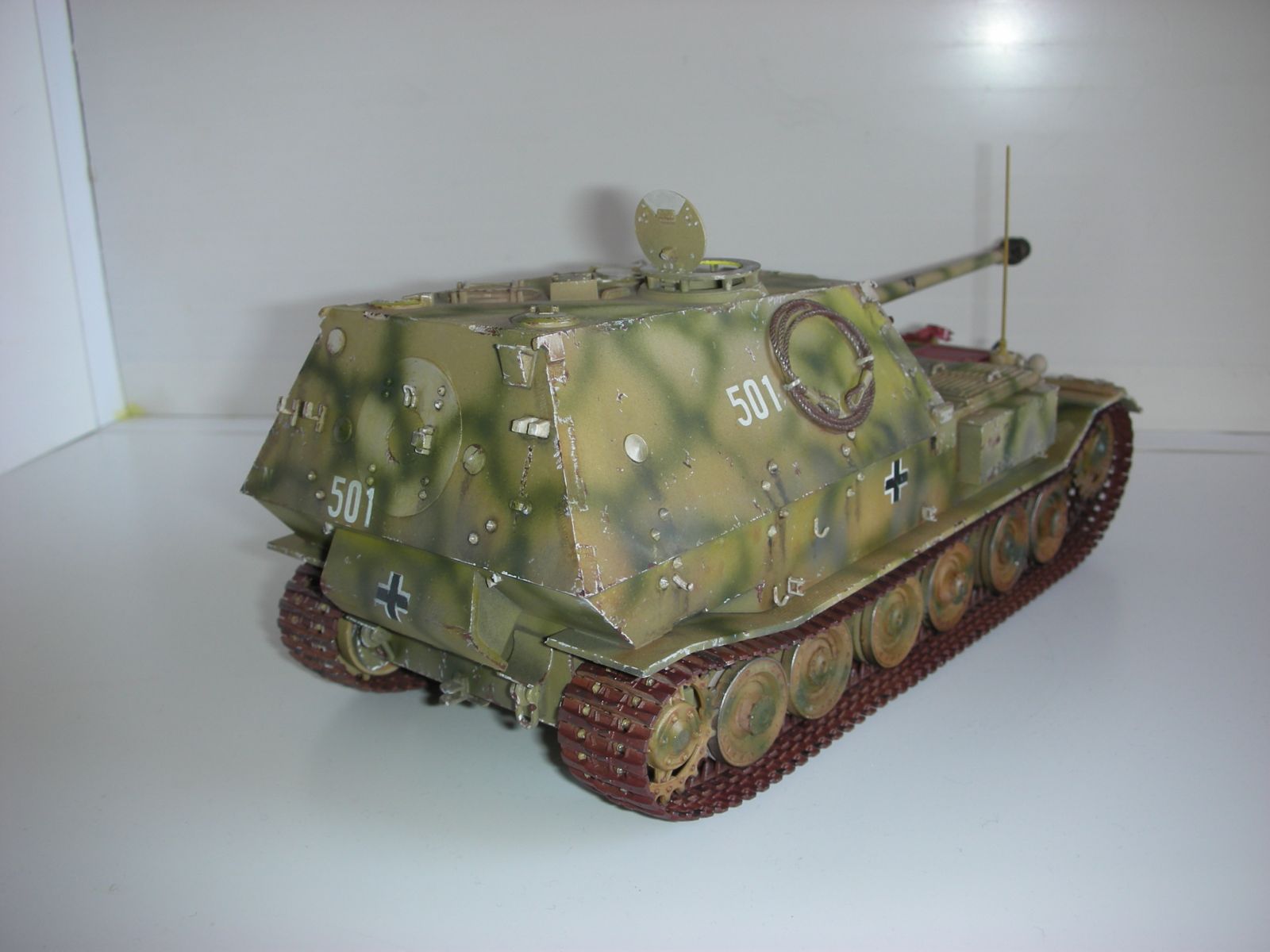 Если собирать это модель из коробки как вы выразились без "шизофрении" то получится что то не понятное, похожее не то на фердинанд не то на элифант (мутант)так что мат часть не оцениваю! Окрас и тонировка удались!
