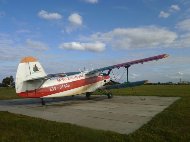 Это самолет ГП беллесавиа которое относится к системе МЧС Беларуси! База находится в Витебске только не на аэродроме ДОСААФ в Куковячине, а на аэродроме Южный, т.е. аэропорт Витебск. Кроме того в Беллесавиа еще эксплуатируются кроме ан-2 еще МИ-2 и ИЛ-103, я сам там работаю инженером по техн. эксплуатации авиац. техники, а до этого работал авиатехником