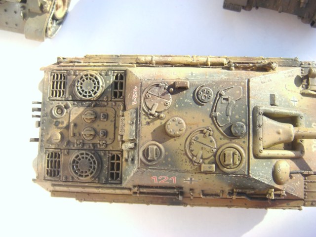 Окраска отличная, все как надо. А вот с доработками все-таки можно было немного поработать, рукоятки на моторном отсеке совсем кошмар, держатели для запасных траков тоже.