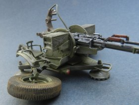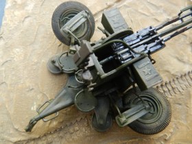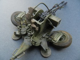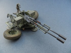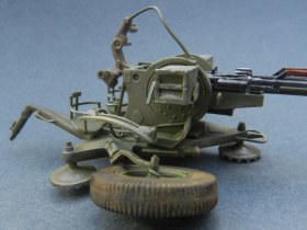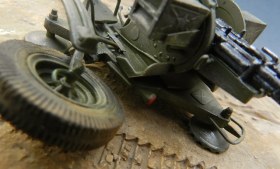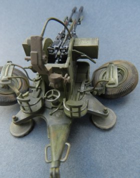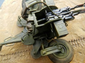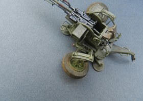 Коротко о переделках (я в терминологии не силен, пишу - как понимаю): все рычаги, рукоятки, крепежные элементы заменены на медно-проволочные. Доработаны стволы, ряд элементов их снятия и постановки. Изготовлены отсутствующие рычаги регулировки колес, системы наведения, тросы управления подъемом стволов, кожухи, в котрые вставляются патронные ящики. Доработан механизм крепления зенитных автоматов к корпусу (в наборе они просто болтаются в воздухе).