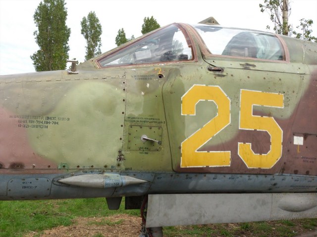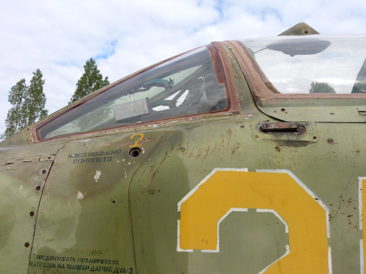 Хороший обзор и матчасть вполне сохранилась, ПВД на месте и пион, все не погнуто, фонарь целый и прозрачный, пушки только не хватает. У нас (в Беларуси), помню в 90-е где-то в газетах читал, когда 27-е сняли, какой-то полк подшефному что-ли колхозу презентовал кайру в качестве памятника и на волне всеобщего бардака пушку оставили на месте, даже стволы не залили и не пропилили, короче заряжайи пали! Потом скандал был и прокуратура.