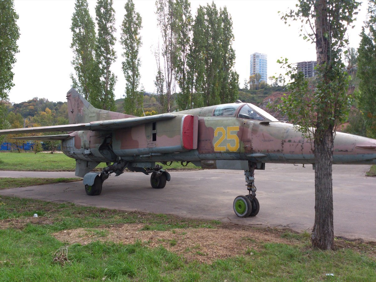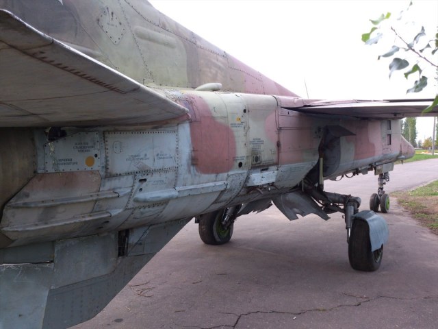 Хороший обход, главное- машина в оригинальной окраске и с живой техничкой, если не поленитесь и будет еще возможность- то добавте фото сверху. А на тему модификации- то это смело может быть и МиГ-27Д, внешне у них, насколько знаю, отличий нет, разница в том, что д-шки шли с завода, а м-ки это переоборудованные до д-шки простые 27-е.
