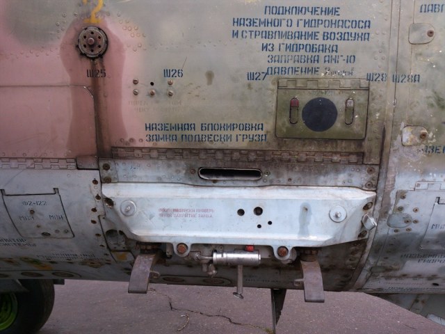 На двух подкрыльевых и подфюзеляжном узле подвески МиГ-27 могло размещаться до трех подвесных топливных баков емкостью по 790 л. Так как размеры пушки ГШ-6-23 все же оказались довольно солидными, она была установлена вне фюзеляжа МиГа, прямо в потоке, как бы на внешней подвеске. Такое решение, лишь незначительно ухудшая аэродинамику исходного самолета (что не имело особого значения для штурмовика, основная область боевого применения которого — малые высоты и дозвуковые скорости), позволило оставить практически неизменным конструкцию планера, обеспечило отличный доступ к оружию и упростило решение проблемы охлаждения блока стволов.