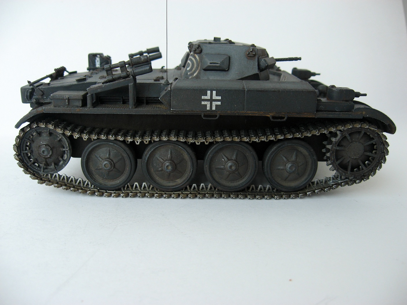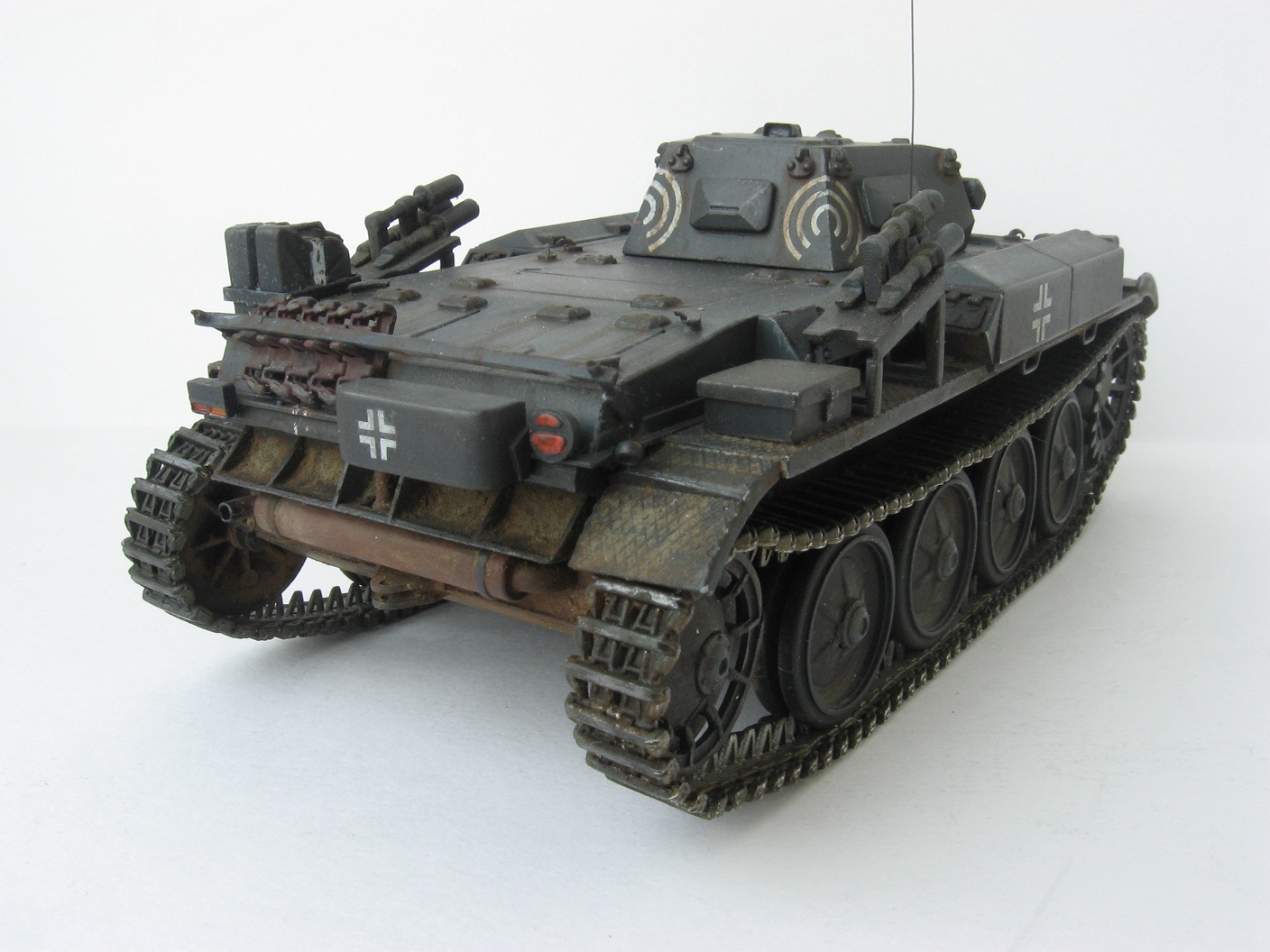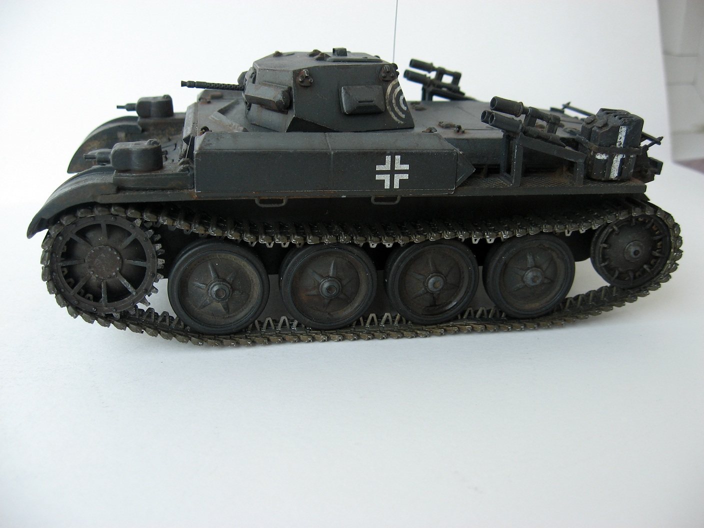 Так же не исправлен ни один косяк по мат.части. Стоило бы заменить некоторые не масштабные детали из набора, например, поручни на полках, и сделать хоть какую-то проводку к думовым гранатам. Сколы до пластика смотрятся плохо. ИМХО песок, но с учетом того какие работы в последнее время просчитаются в галерею, то у этой работы тоже есть все шансы отправится туда.