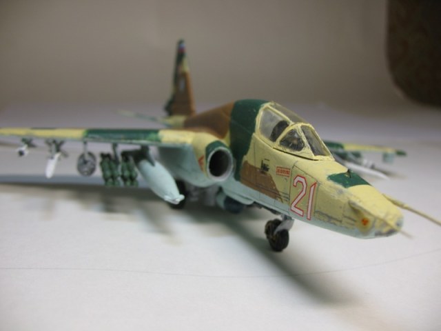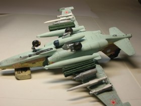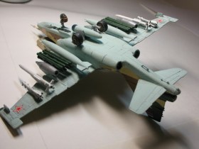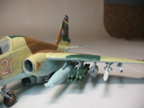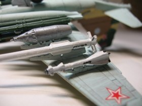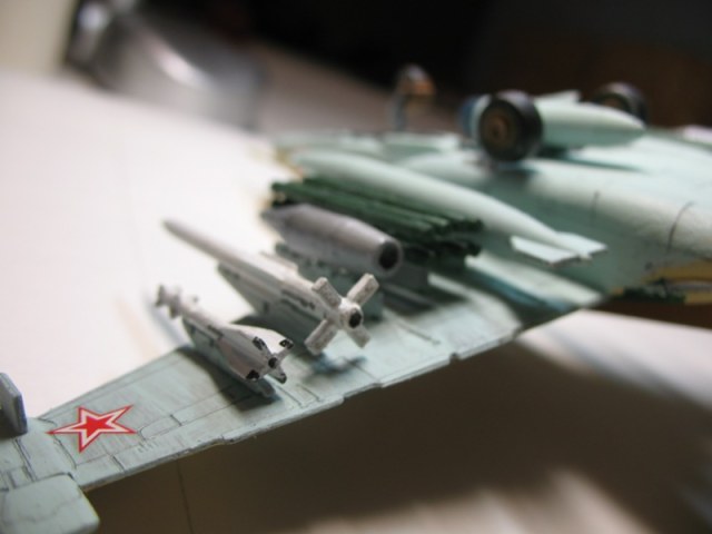 Из доработок: позаимствовал Р-77 из своих запасов, положил свинец в ПТБ (без него самолёт садился "на попа"), рассверлил сопла у ракет.