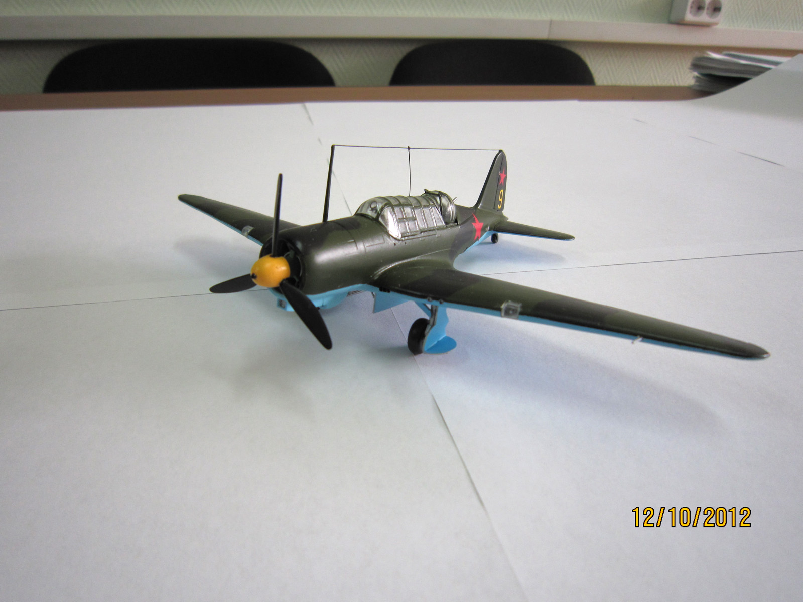 Да, коллега,мне трудно что-либо сказать положительное...Модель собирается вполне нормально (поверьте уж мне!),просто не надо спешить и тщательно подгонять детали ДО склеивания.Двигатель почему-то блестит ярким алюминием,сетка маслорадиатора тоже какая-то светлая,технологический шов в нишах шасси,утяжины на нижних лючках кабины штурмана (заменить на прозрачную пленку-ну никах проблем!),растяжка антенны по-моему толстовата, створки шасси складывались НЕ под прямым углом, бомбодержатель явно сделан не в масштабе, ну ОЧЕНЬ толстые стенки воздухозаборника маслорадиатора. В общем как-то так...