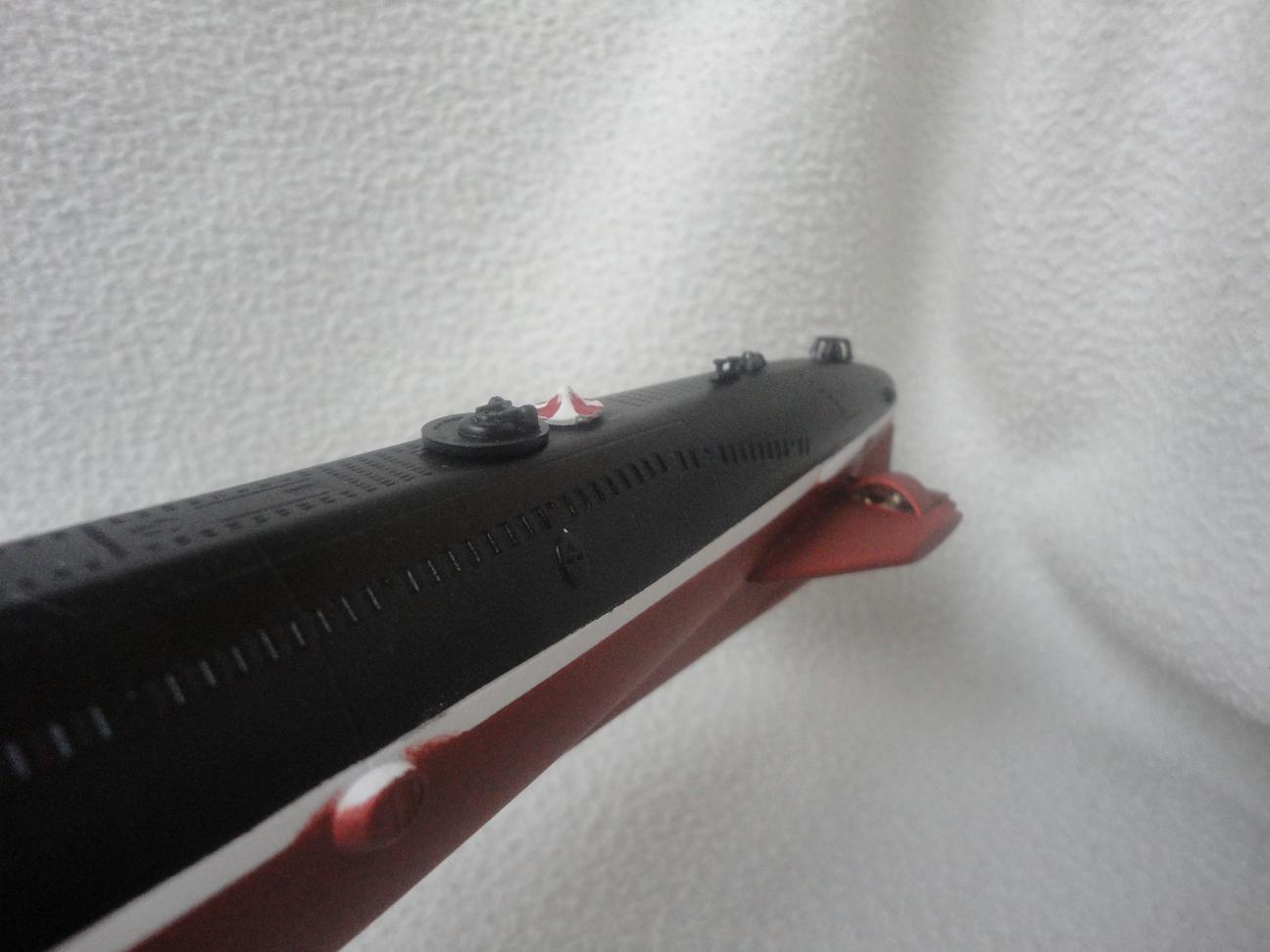 На собственном опыте убедился, что модели в 350-м масштабе ни в коем случае нельзя красить в чёрный цвет. Даже если прототип нёс на себе именно такую окраску. Данный цвет необходимо высветлять (до разумных пределов, конечно), чтобы модель "читалась". Иначе получится просто чёрная болванка.