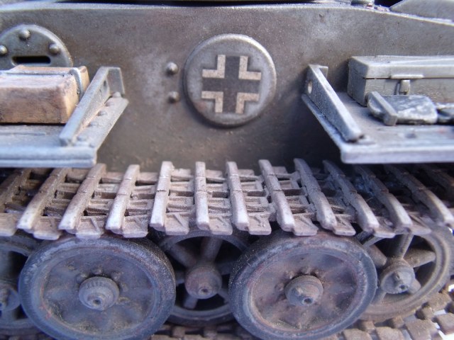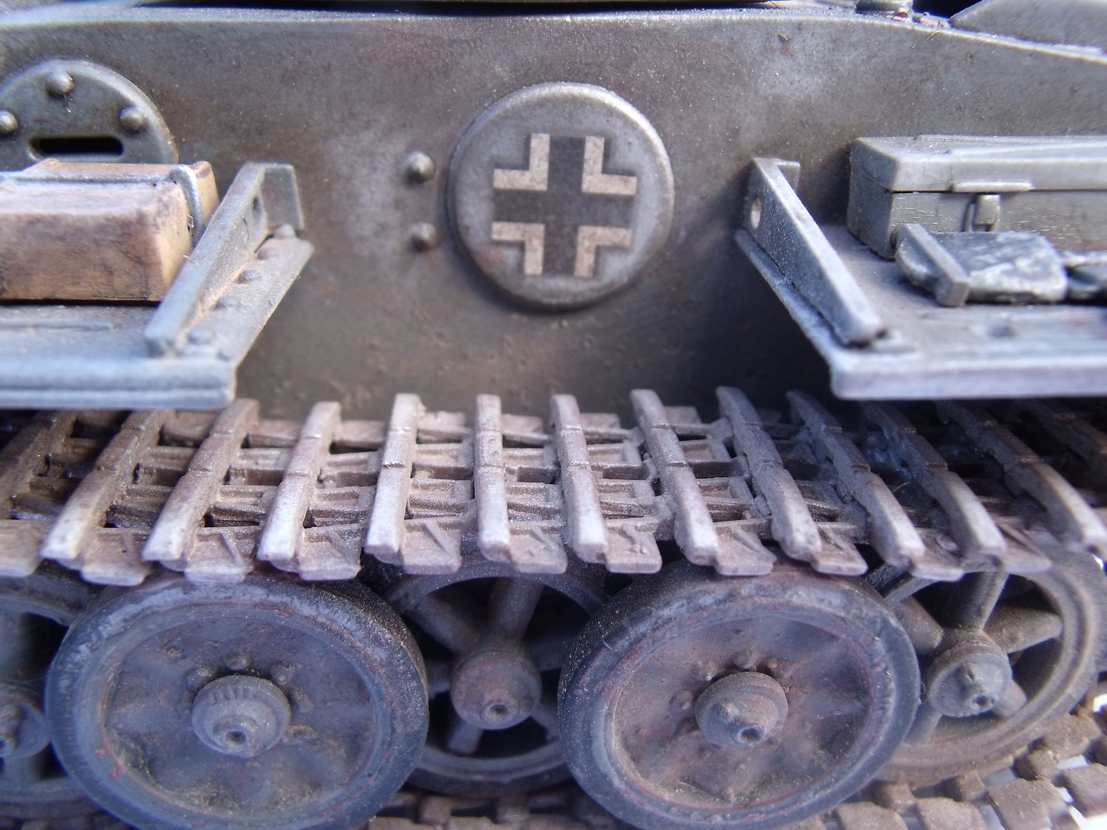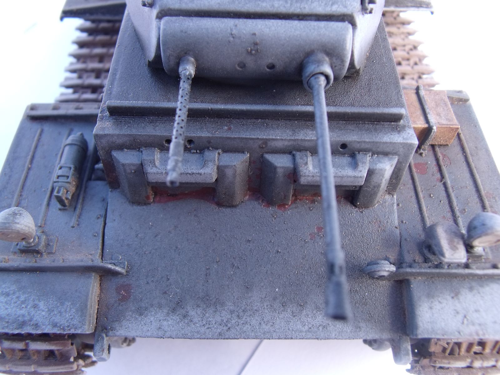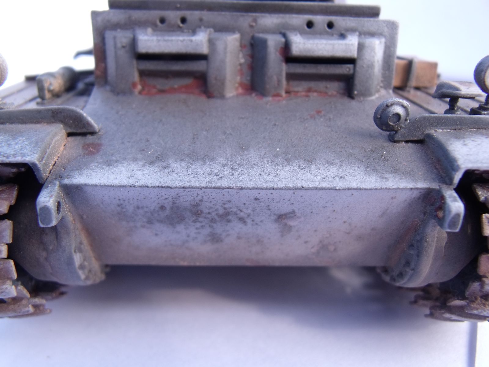 Как и у предыдущей модели ходовая хорошо вышла,беговые дорожки только металлом пройти,а вот на верху не понятны коричневые пятна.То-ли ржа,то-ли сколы,хотя и на то и на другое мало похожи.Пыль перед покраской наверное не убрали?С уважением.