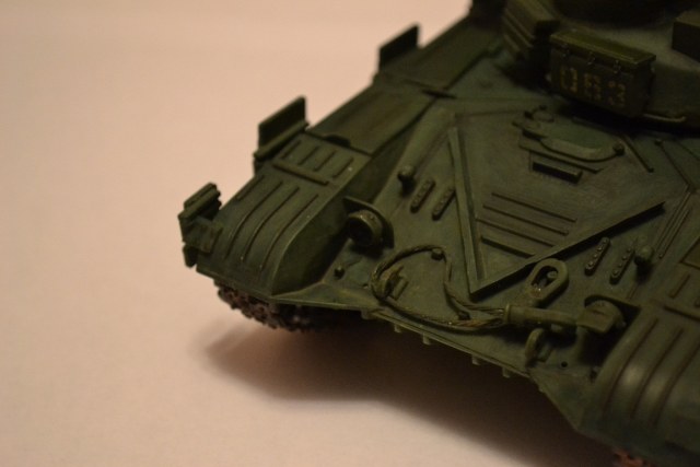 Итак. Начал постройку модели с мая месяца. Делал только тогда, когда хотелось, не спеша и в удовольствие. Склеил я все примерно в конце июня. Поставил на полку и не мог нарадоваться. Детали просто ужас, даже я как начинающий с трудом склеивал погнутые части танка. Потом как то залез в интернет почитать, что да как правильно делается. И попал на "тучу" информации о покраске, фильтрах, смывках, сколах и т.д. Купил акрил краску зеленую, потом худ. масло и растворитель. Кисточки и понеслось. И так закончил я красить и все эти штуки слой за слоем примерно в конце августа. Не знаю как получилось для опытных глаз, но как по мне - ничего так.