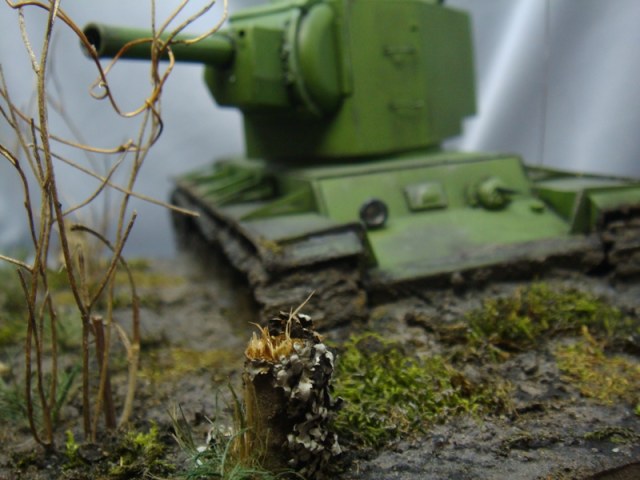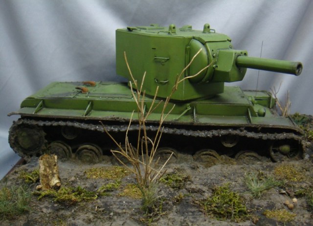 ...Надо бы "состарить" КВ-2 и придумать легенду,а так...не пойдёт.