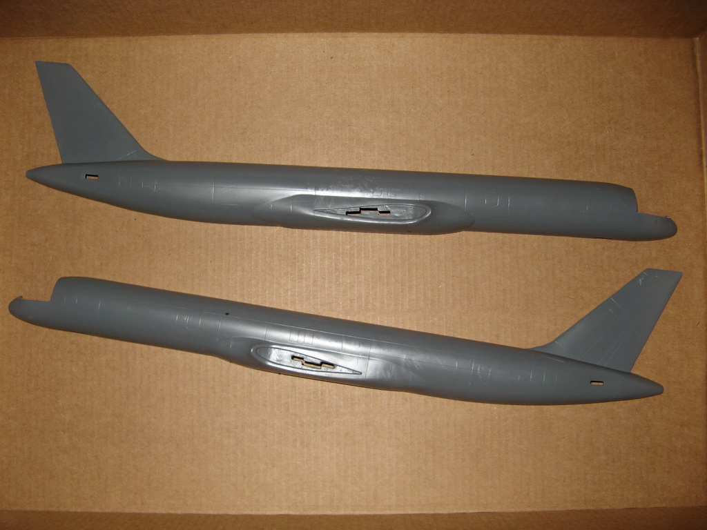 Набор включает в себя две половинки фюзеляжа, два литника с крыльями, один с двигателями, и один с элементами шасси и прозрачное остекление кабины. Остекление салона на радость любителям декалей.
