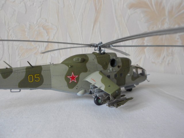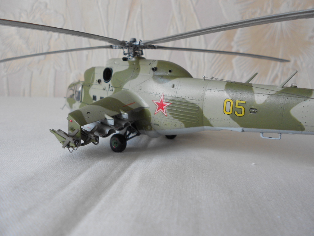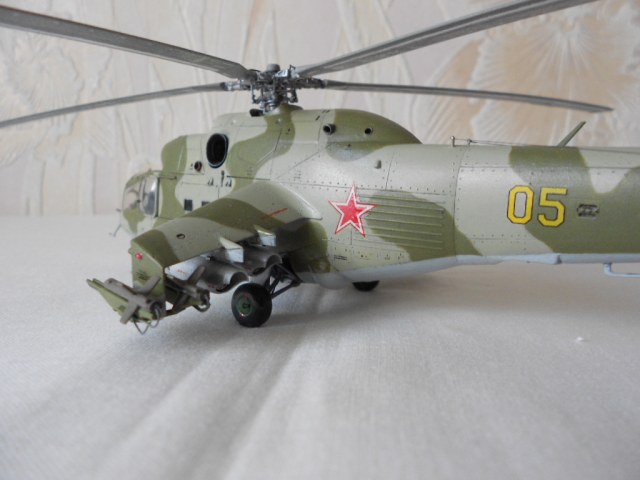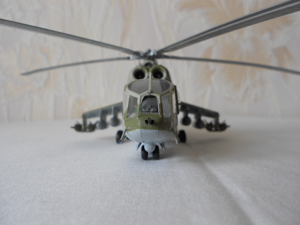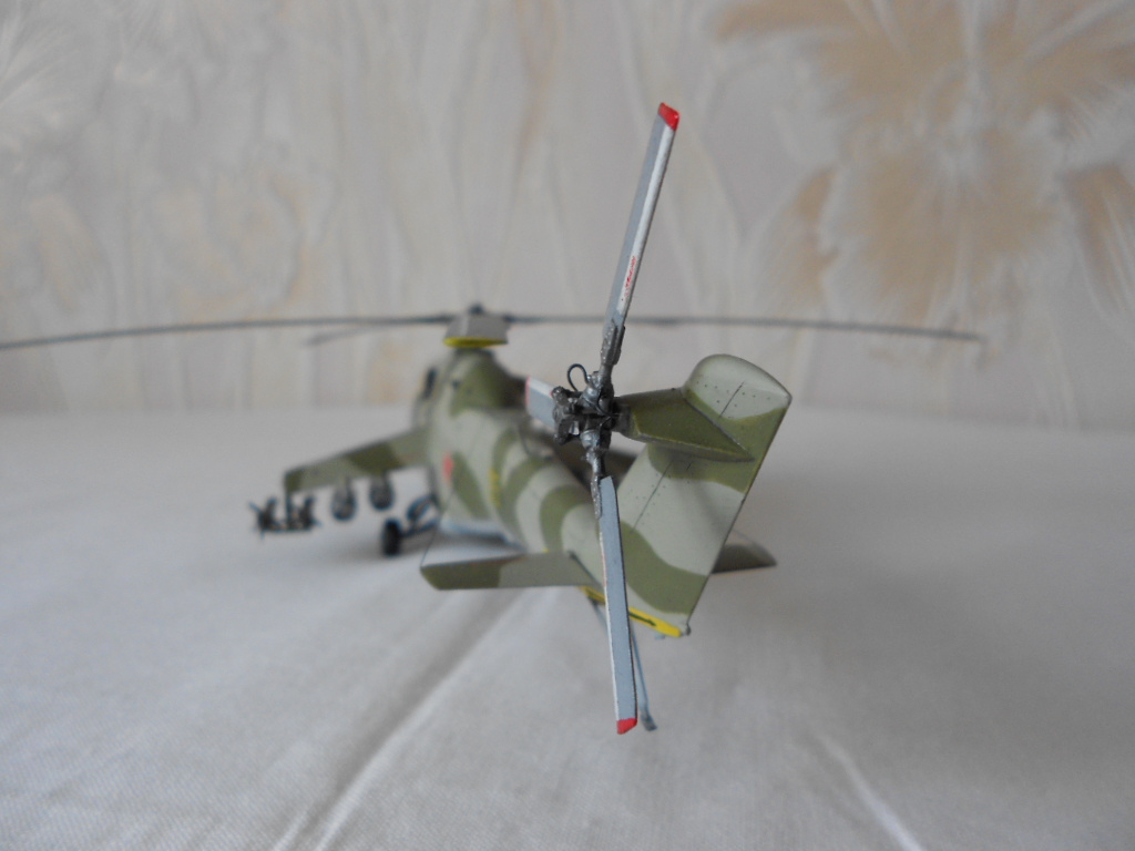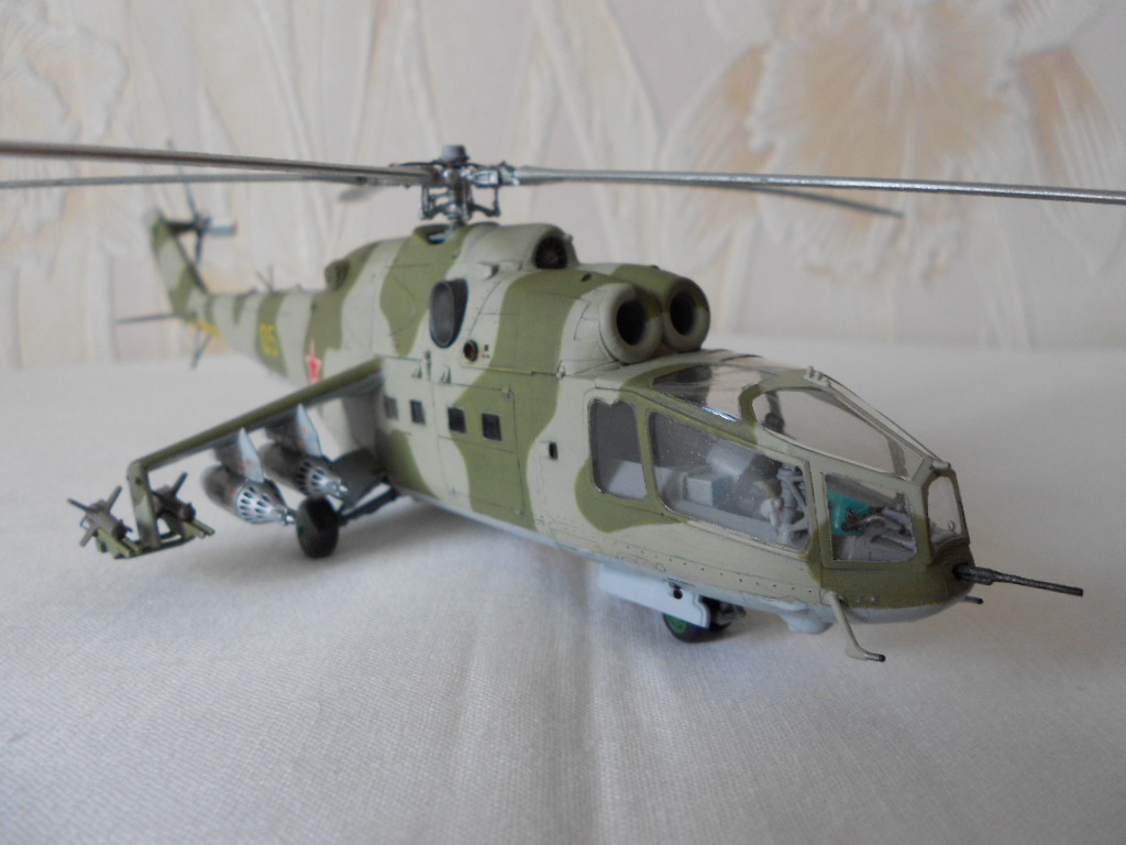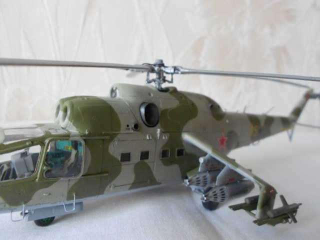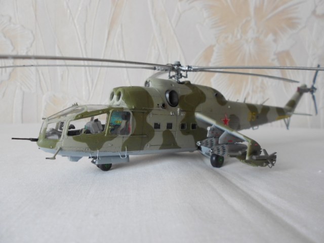 Здравствуйте. Вот и я решил собрать новинку от Звезды. Сборка и покраска принесла много удовольствия. Стыкуемость отличная, шпаклёвки минимум. Из доработок проводка на шасси, вооружение, на несущий и рулевой винты, также подножки из проволоки. Покраска кистью, красками акан, звезда, художественным акрилом Ладога. Также применялись пигменты от Тамии- металлики. Глянцевый и матовый лаки из баллонов Тамия.