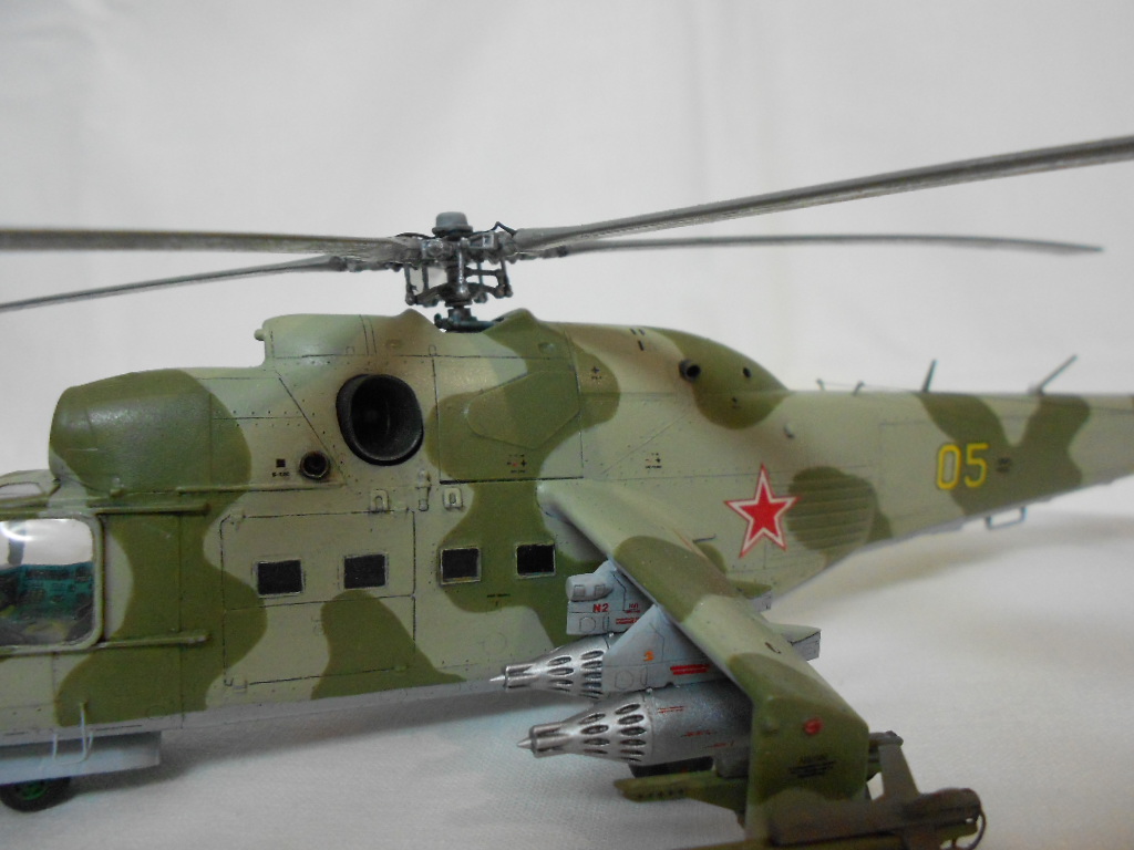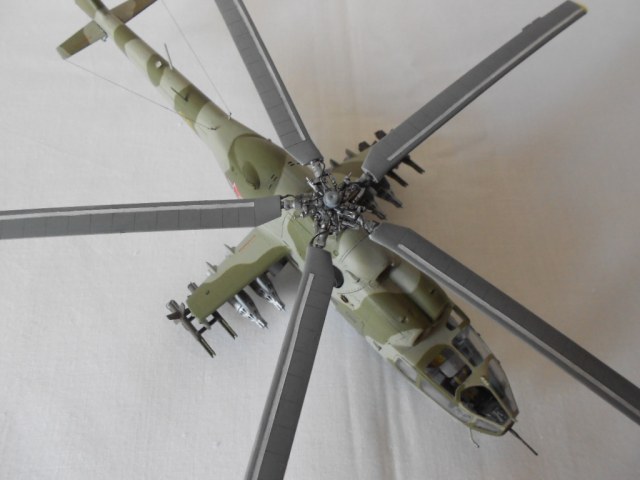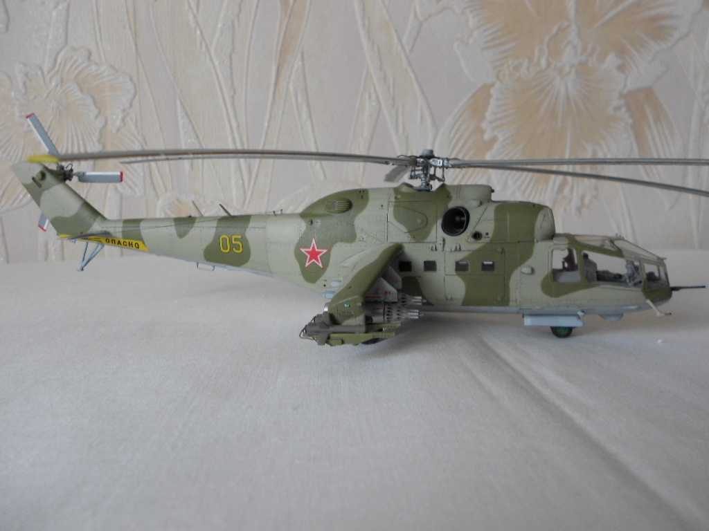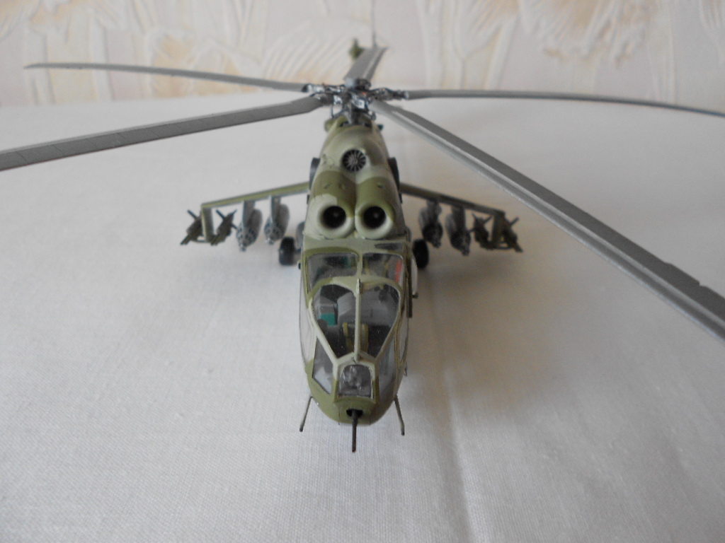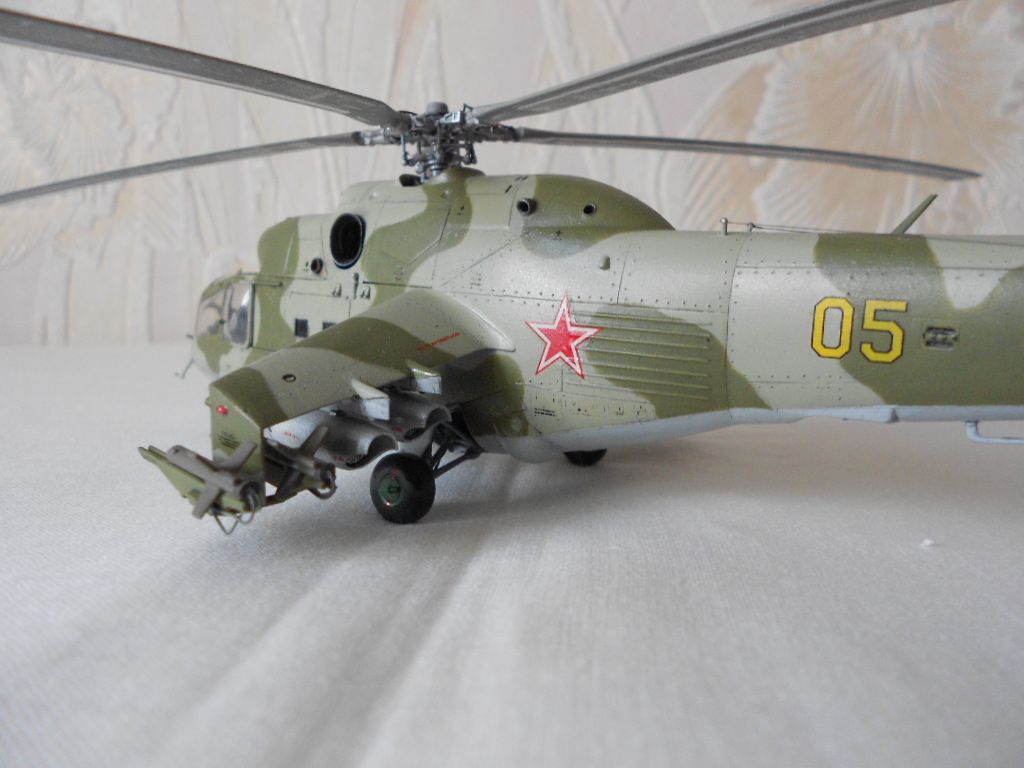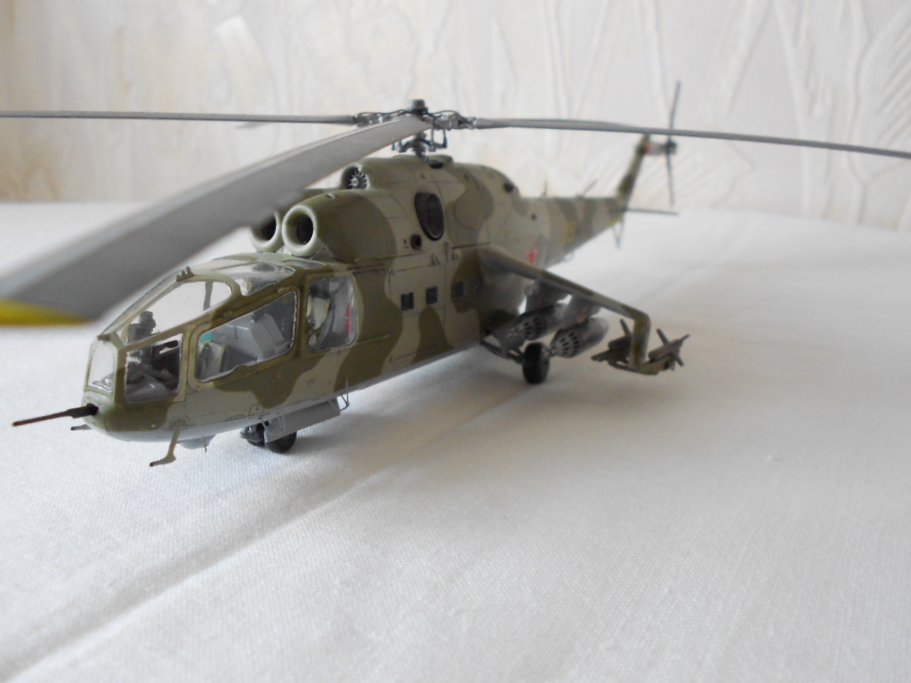 Здравствуйте. Вот и я решил собрать новинку от Звезды. Сборка и покраска принесла много удовольствия. Стыкуемость отличная, шпаклёвки минимум. Из доработок проводка на шасси, вооружение, на несущий и рулевой винты, также подножки из проволоки. Покраска кистью, красками акан, звезда, художественным акрилом Ладога. Также применялись пигменты от Тамии- металлики. Глянцевый и матовый лаки из баллонов Тамия.