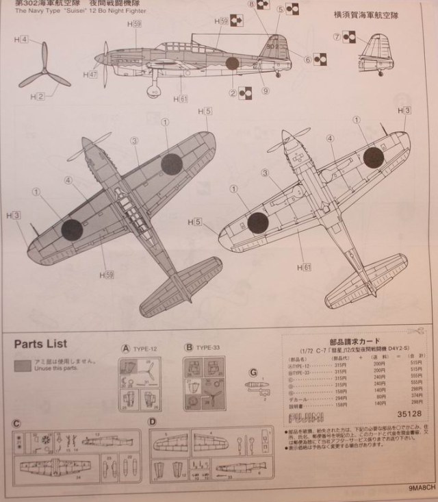 Модель от "Фуджими" тяжелого ночного истребителя D4Y2-S «Suisei-Е», созданного японского компанией Yokosuka, на базе пикирующего бомбардировщика D4Y2 «Suisei». Cерийное производство самолета начато в 1944 году.