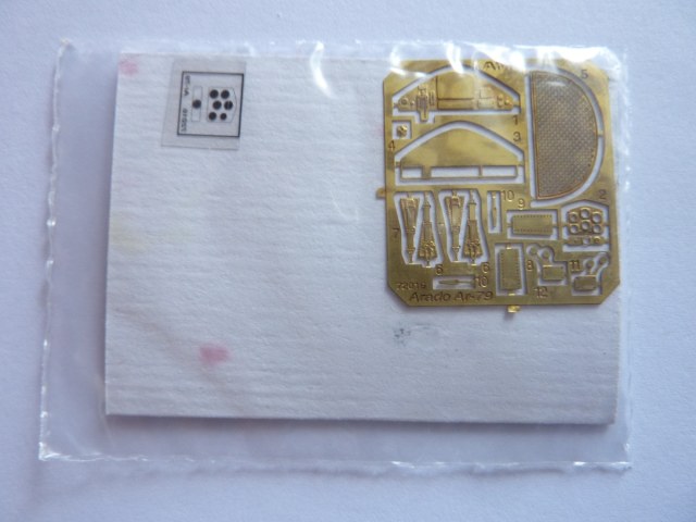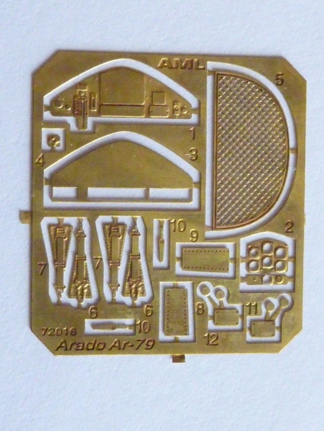 Здравствуйте коллеги! Очередной обзор. На этот раз немецкий AradoAr 79, чешской фирмы AML. Что из себя представляет набор? Коробка с боковой загрузкой, из гофрированного картона с яркой полиграфией. В наборе представлено, одна не большая рамка из серого пластика, вакушный фонарь, фототравление, плёнка с приборной доской, лист декалей, ну и сама инструкция. Рамка с небольшим облоем, утяжин вроде нет. Расшивка внутренняя, тонкая, но не глубокая, возможно придётся немного углубить. Приборная доска хоть и дана бутербродом в фототравлении, вид у пластиковой, на мой взгляд, шикарный. Фонаря дано две штуки в одной вакушной форме, сильно пожелтел, наверное от времени. Кто знает, подскажите как можно высветлить фонарь? На листе фототравлении дано: ремни, сетка за спиной лётчиков, приборная доска с плёнкой, рычаги и по мелочам. Декаль на пять вариантов окраски. Два немецких и три венгерских. Свастика в комплекте дана, только из двух половинок. Инструкция понятная, на первый взгляд вопросов не вызывает.